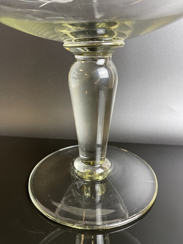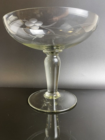 Ваза хрустальная фруктовница на ножке, высота - 18.3 см, винтажная, изящный узор, СССР 1970-1990 гг. Диаметр верха - 20 см. Присутствуют следы использования - царапинки.