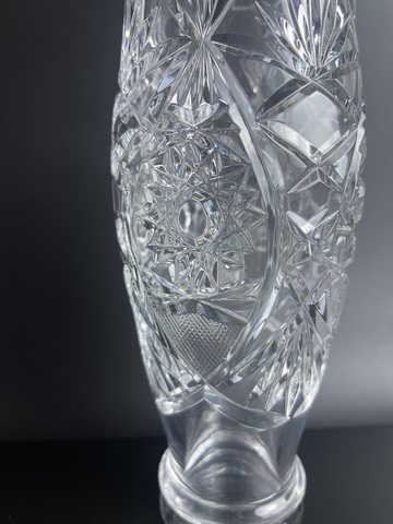 Ваза хрустальная изящная для цветов, алмазная грань, высота - 19.5 см, винтаж, СССР 1970-1990 гг. Сервантное хранение- состояние на фото