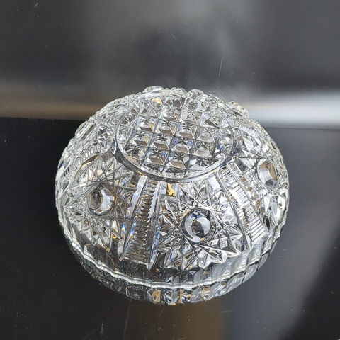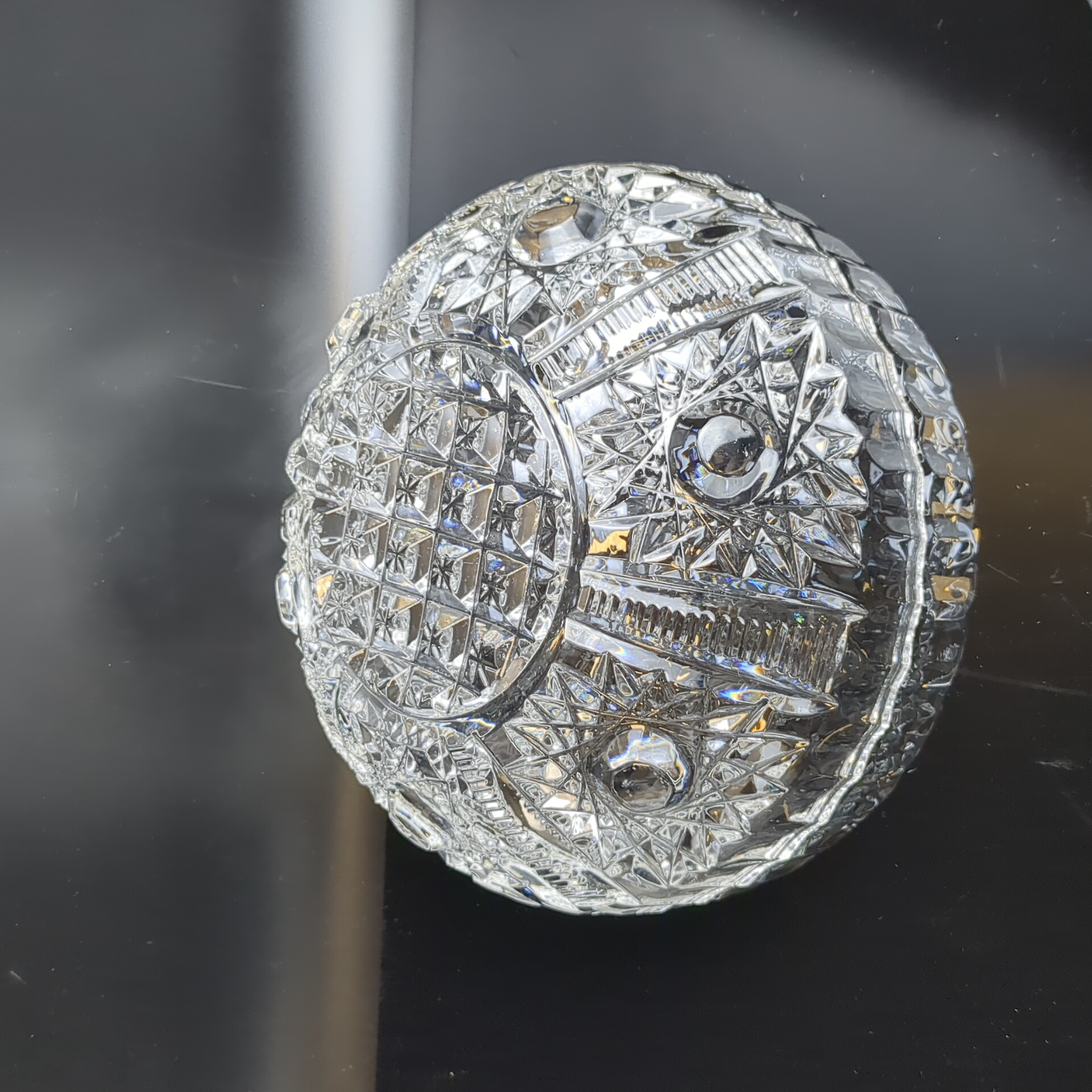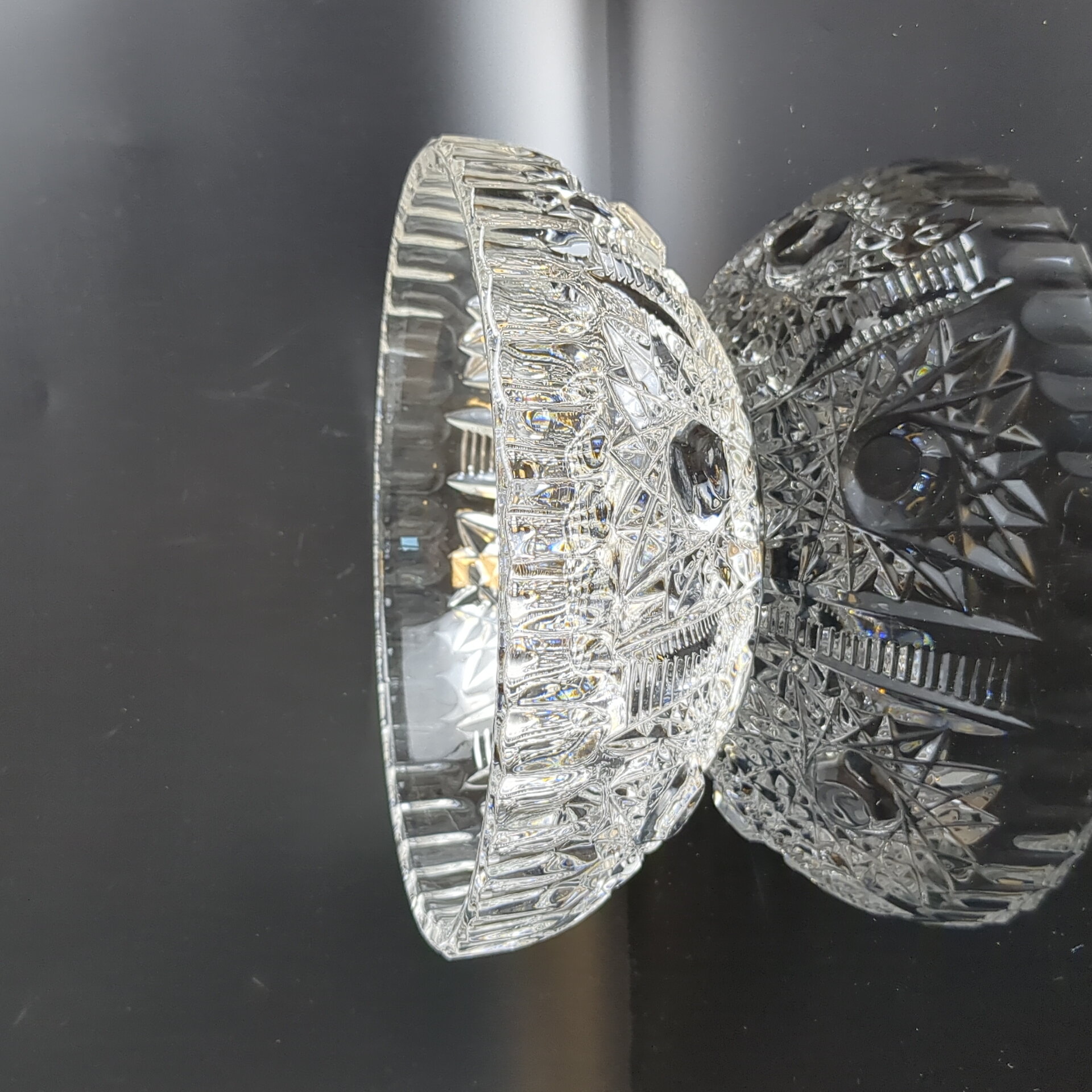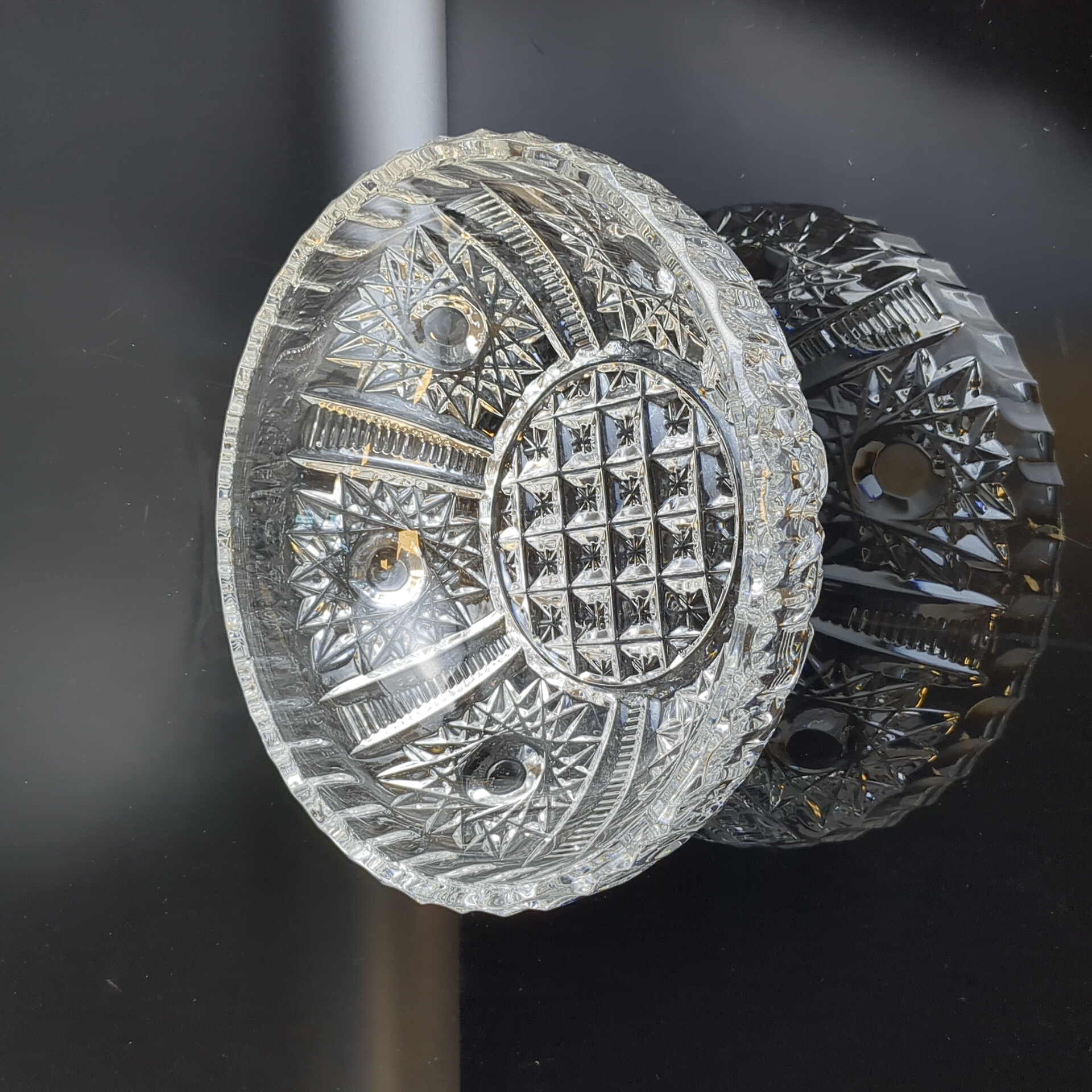 Ваза конфетница, фрутовница хрустальная, алмазная грань, изящный геометрический орнамент, винтаж СССР 1970-1990 гг. Высота - 6.5 см, диаметр - 19.3 см. Состояние на фото