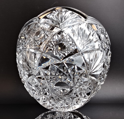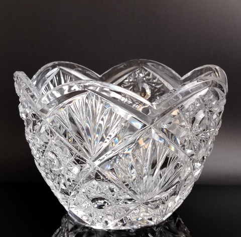Ваза конфетница хрустальная алмазная грань, геометрический орнамент, винтаж СССР 1970-1990 гг. Высота - 10.5 см. Присутствуют следы использования- состояние на фото