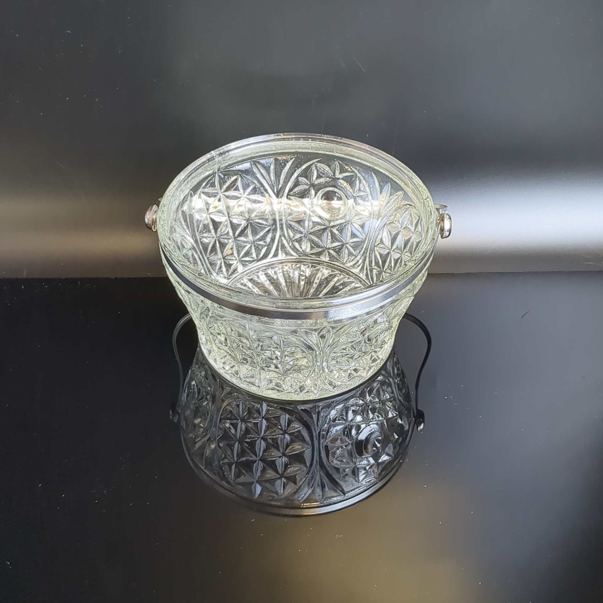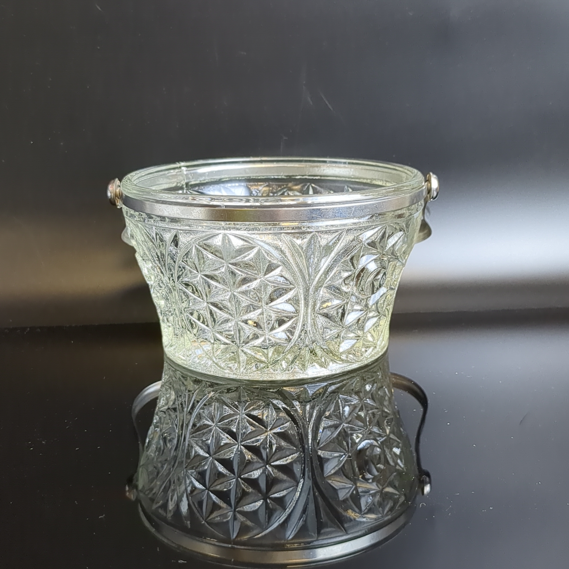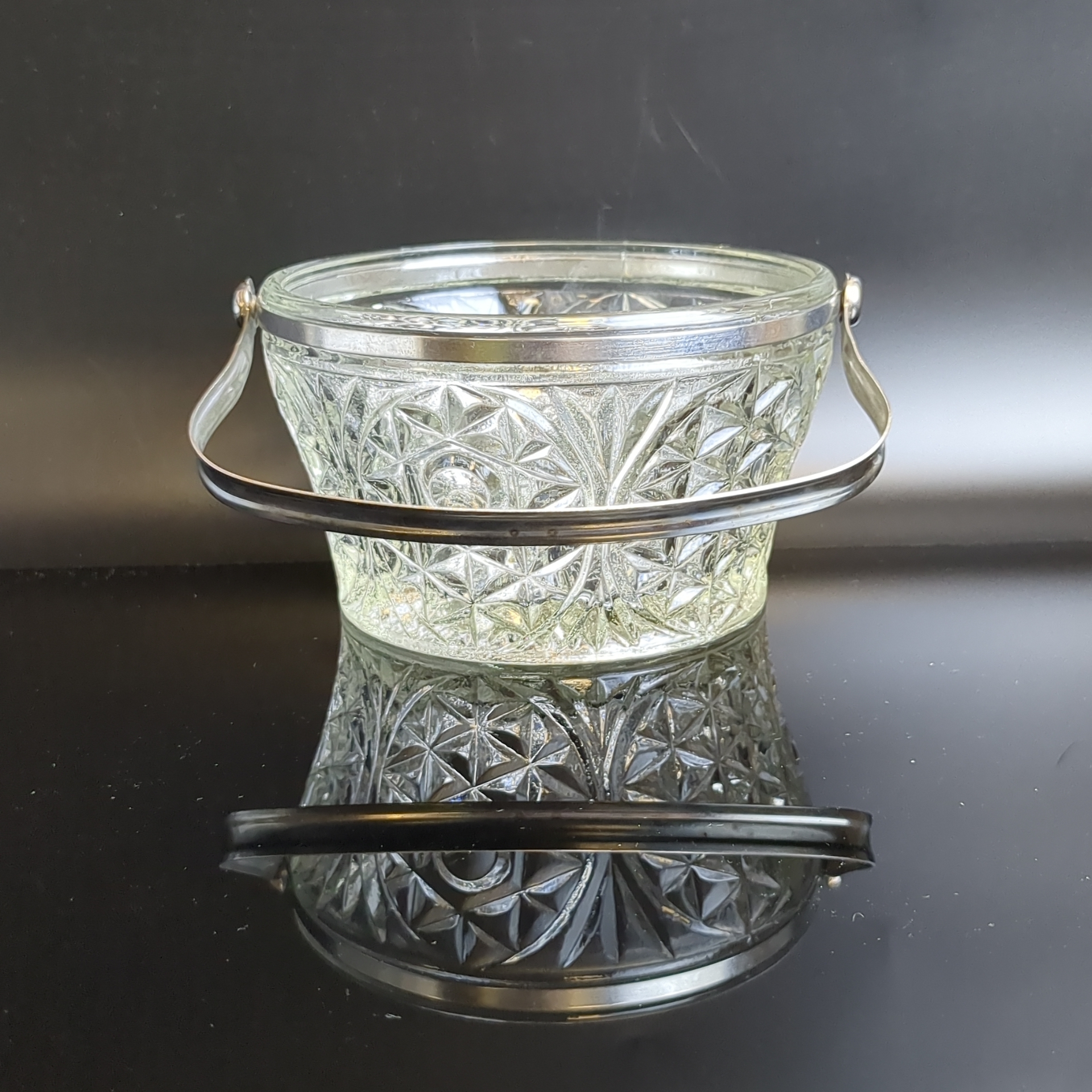 Ваза конфетница хрустальная с металлической ручкой, красивый узор, вазочка хрусталь винтаж СССР 1970-1990 гг. Высота без ручки - 7.5 см. Диаметр верха - 12.5 см. Состояние на фото