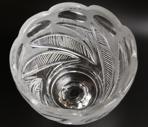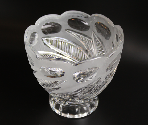 Ваза конфетница хрустальная винтажная, рельефный декор и матовое стекло, высота - 11.5 см, диаметр - 13 см, СССР 1970- 1990 гг. Сервантное хранение, присутствуют незначительные потертости