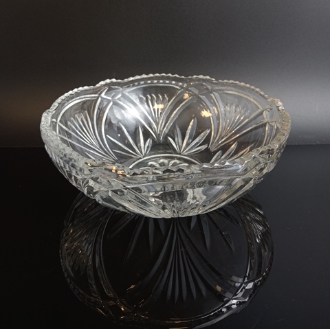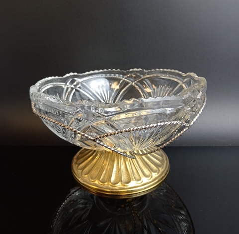 Ваза конфетница изящная на ножке хрустальная, с металлической оплеткой, винтажная времён СССР 1970-1990 гг