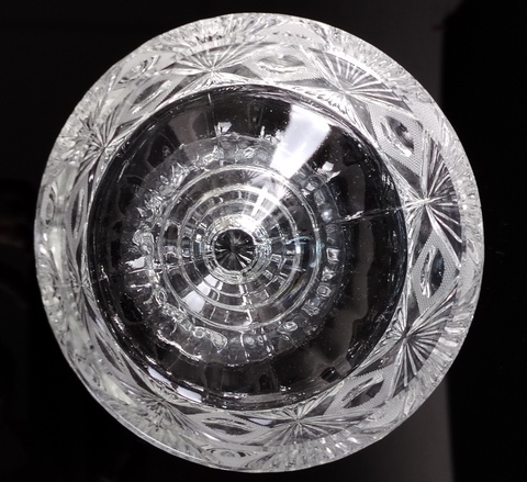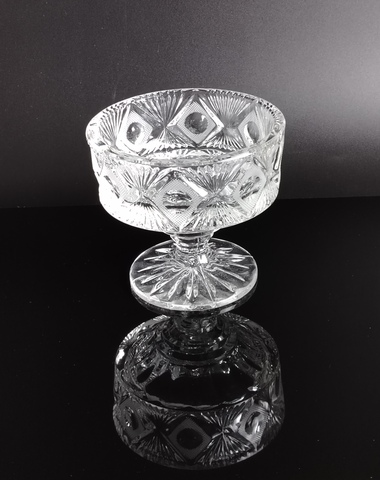 Ваза конфетница на ножке хрустальная алмазная грань, СССР, 1970-1990 гг. Высота - 11 см, диаметр верха - 12.5 см. Присутствуют следы использования -состояние на фото