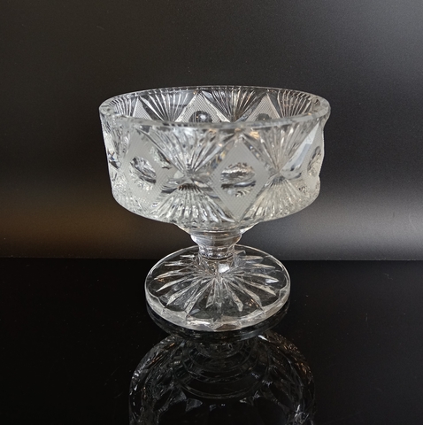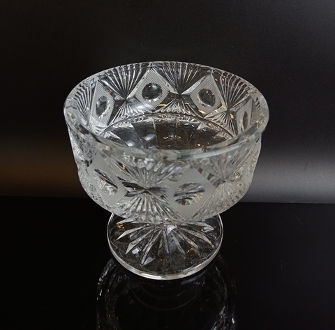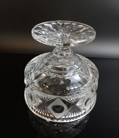 Ваза конфетница на ножке хрустальная алмазная грань, СССР, 1970-1990 гг. Высота - 12 см, диаметр верха - 12.5 см. Присутствуют следы использования -состояние на фото