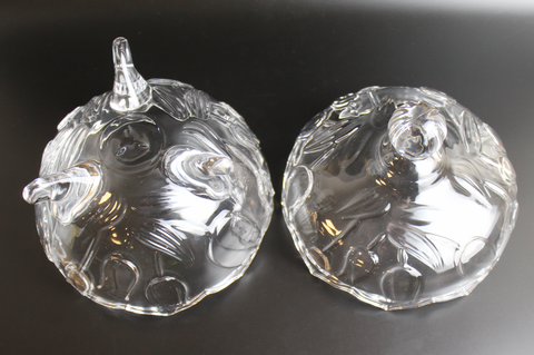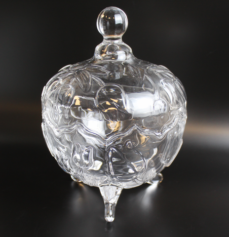 Ваза конфетница с крышкой стеклянная на ножках с изящным декором 20 см, СССР 1970-1990 гг. Сервантное хранение