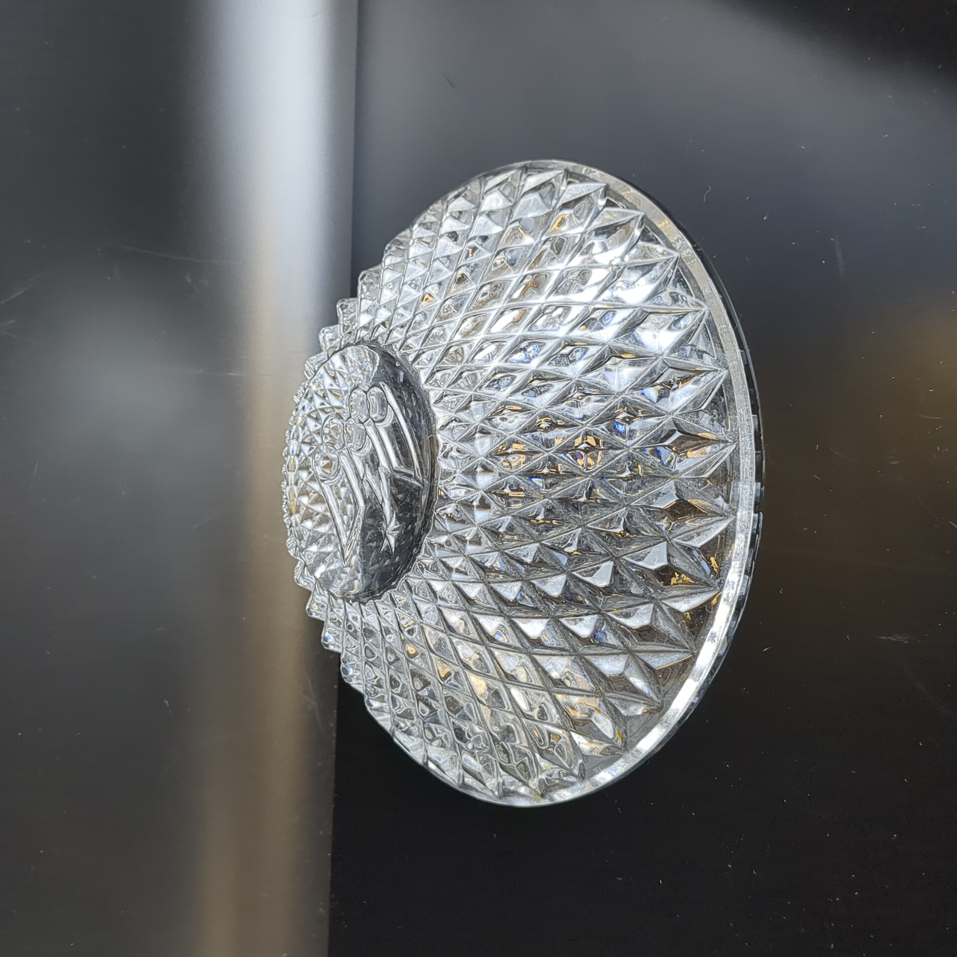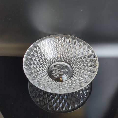 Ваза конфетница с символикой "Олимпиада 80" стекло, ЛЗХЗ, винтаж, геометрический орнамент, СССР 1979-1980 гг. Состояние на фото