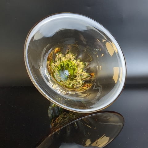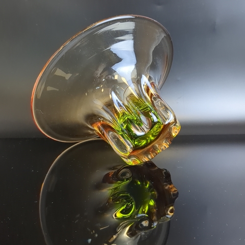 Эта роскошная вазочка-конфетница, выполненная в гутной технике, станет изысканным украшением вашего интерьера и настоящим акцентом для любого стола. Настоящая находка для ценителей винтажного искусства, созданная в период с 1970 по 1990 годы в Чехословакии.
