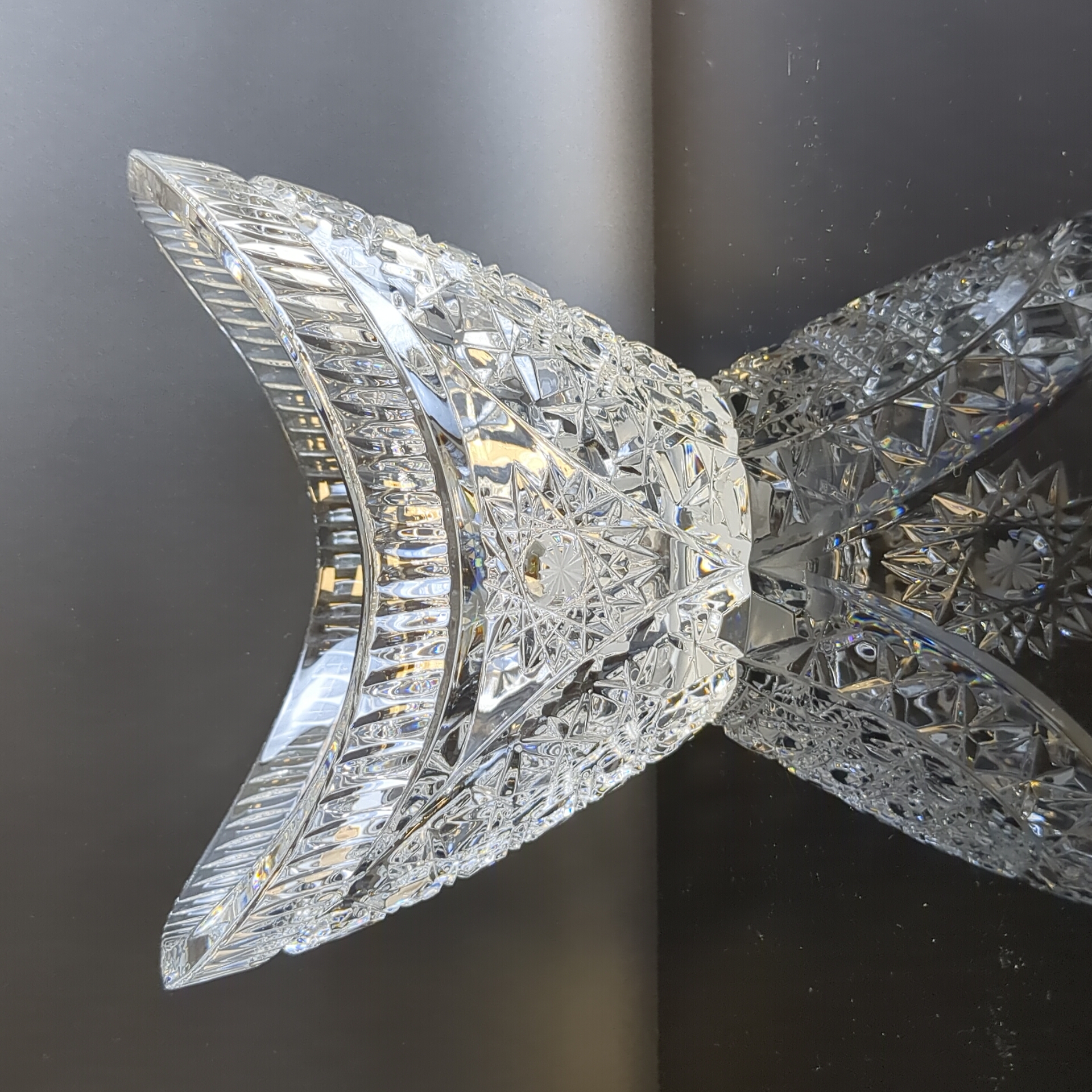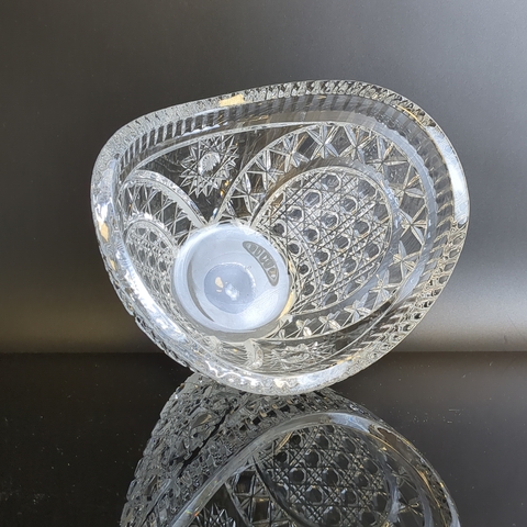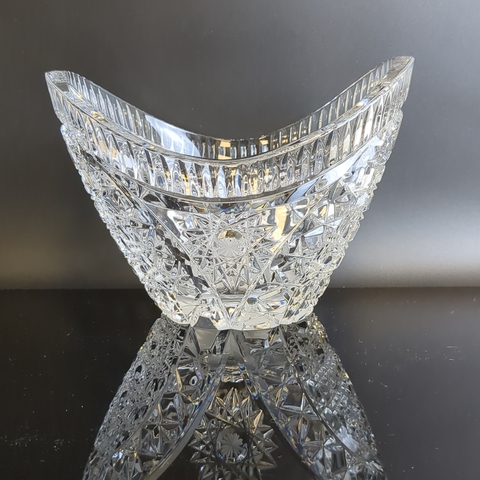 Ваза конфетница в форме ладьи, алмазная грань, геометрический орнамент, винтаж времен СССР 1970-1990 гг. Высота - 14 см, длина - 20.5 см. Ваза идеально подойдет для хранения конфет, фруктов, сладостей, а так же, добавит изыск и роскошь в интерьер.