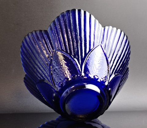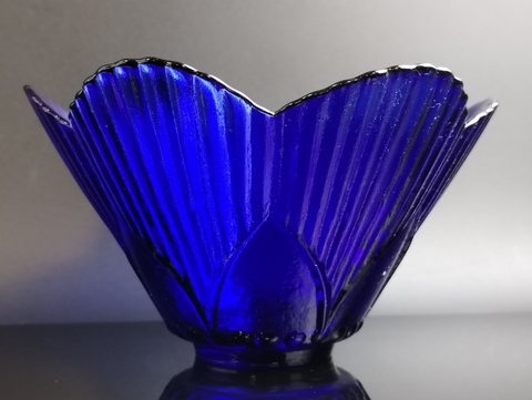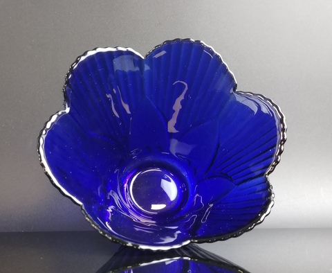 Ваза конфетница в виде цветка, синее кобальтовое стекло, винтаж СССР 1970-1990 гг. Диаметр - 14.5 см. Высота - 9 см. Присутствуют следы использования- состояние на фото
