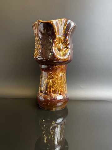 Ваза отливная керамика с декором цветы, 22 см, винтаж времен СССР 1960-1990 гг. Присутствуют следы использования, состояние на фото