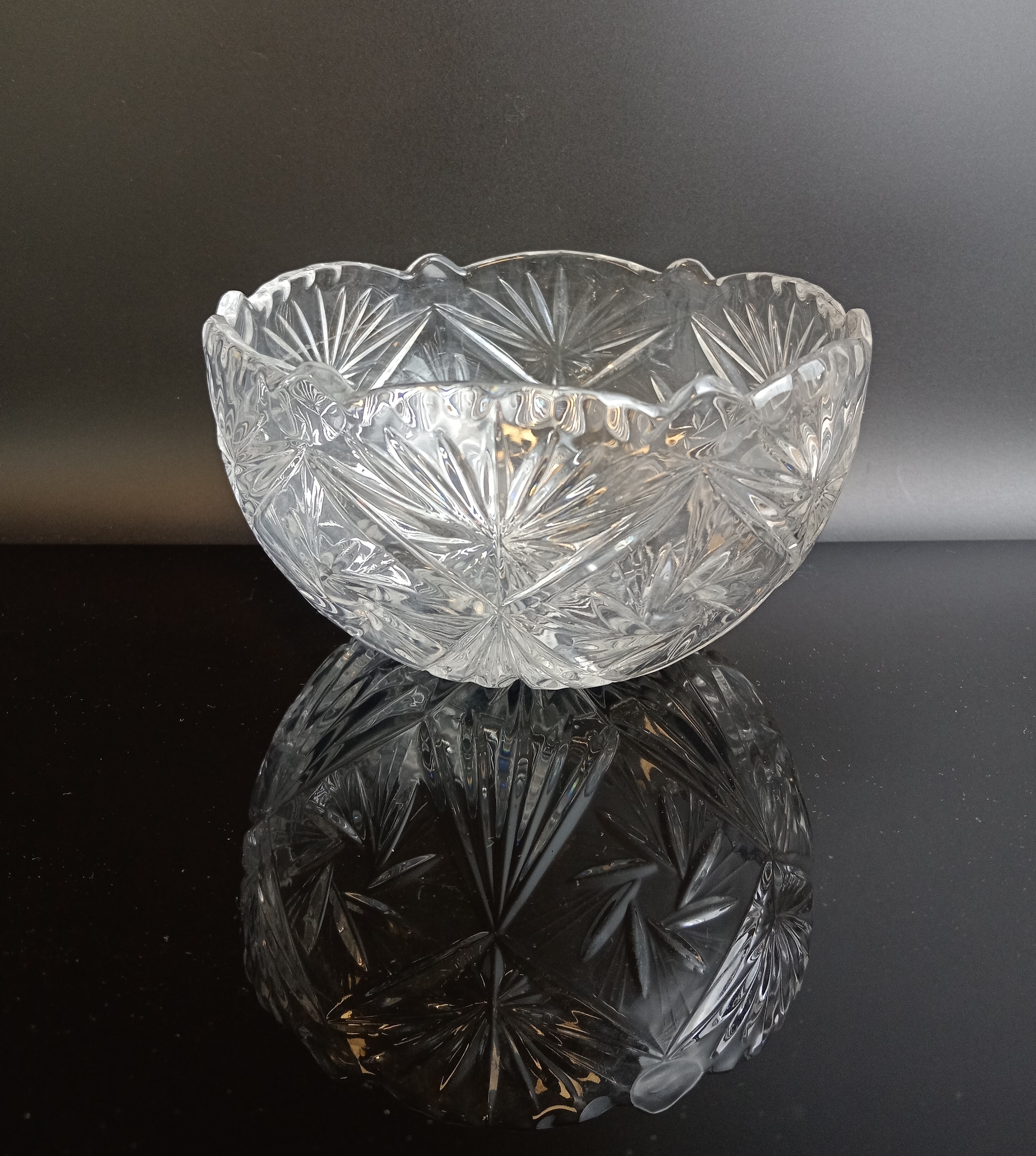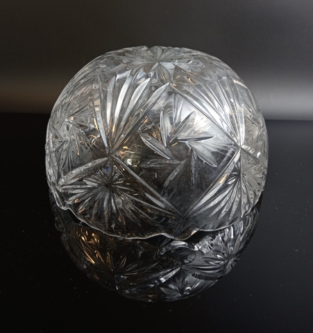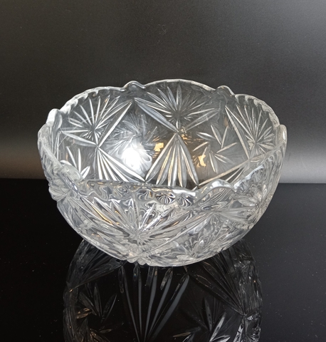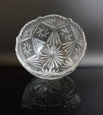Ваза салатник хрустальный изящный декор цветы, геометрический орнамент, алмазная грань, винтаж СССР 1970-1990 гг. Диаметр - 17 см, высота - 9 см. Присутствуют следы использования - состояние на фото