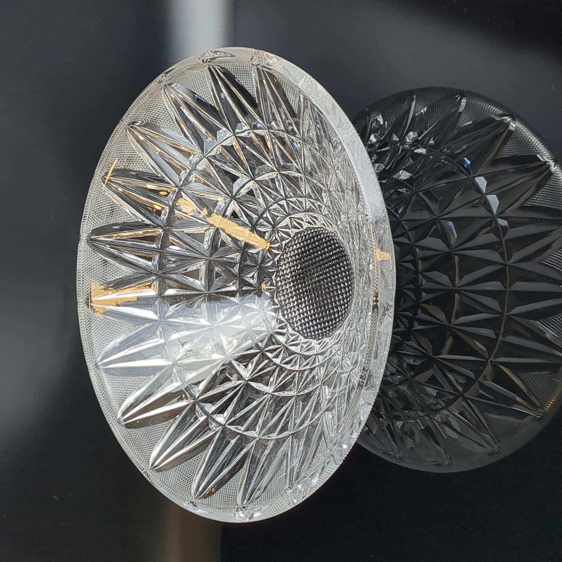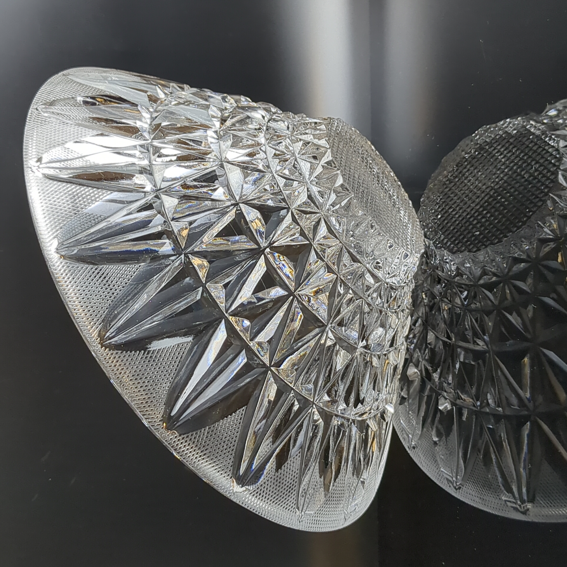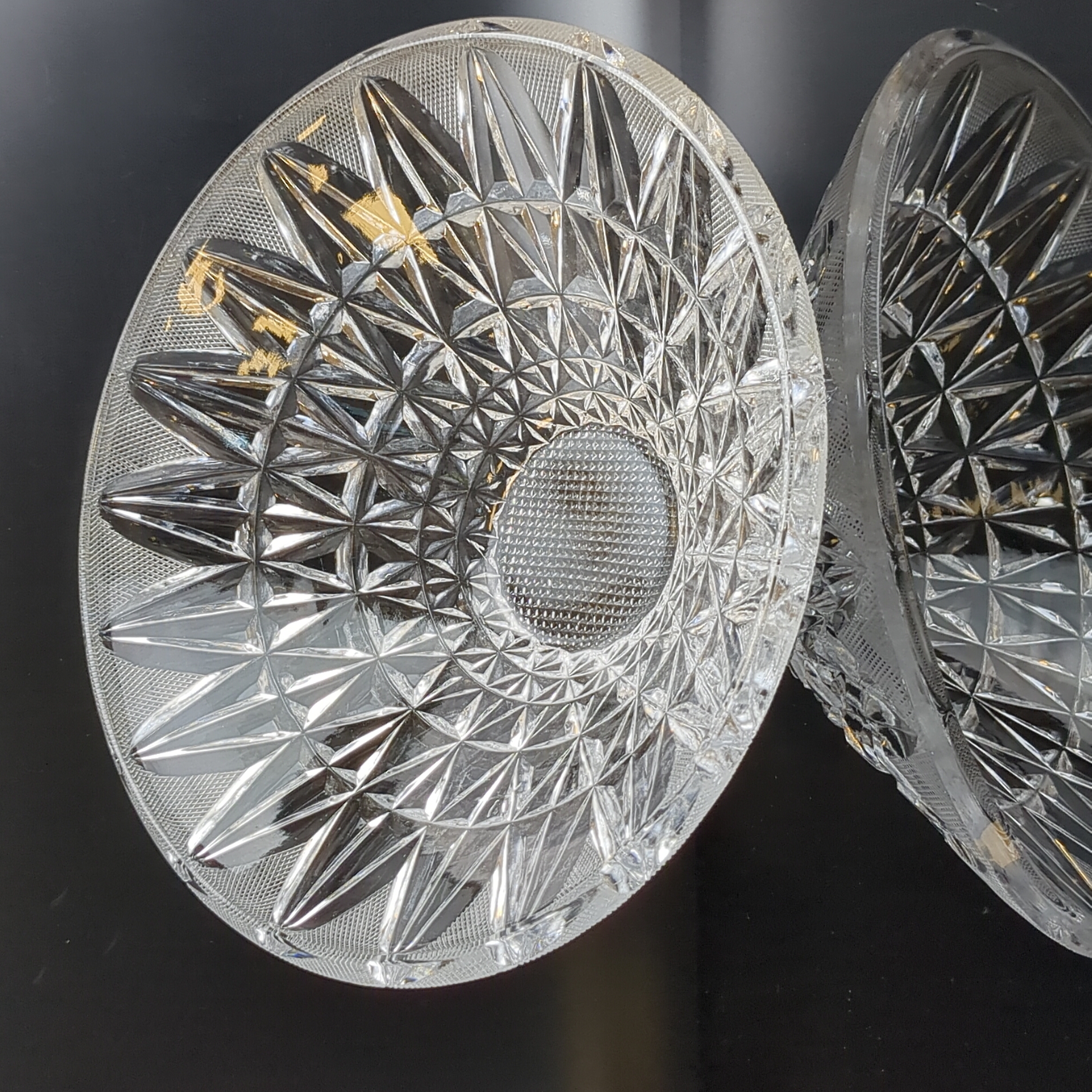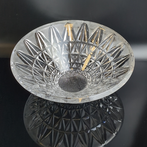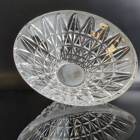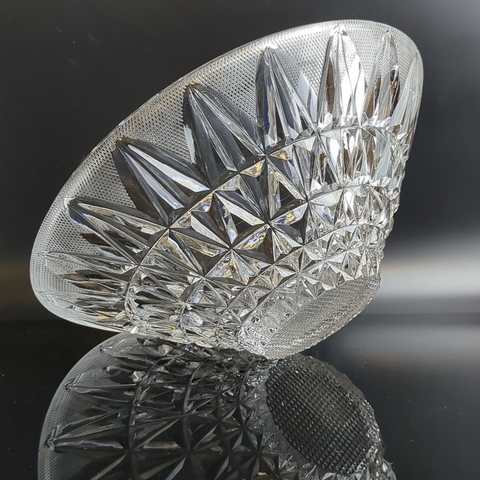 Ваза салатник хрустальная, алмазная грань, геометрический резной декор, винтаж СССР 1970-1990 гг. Высота - 9.5 см, диаметр верха - 25 см. Состояние на фото