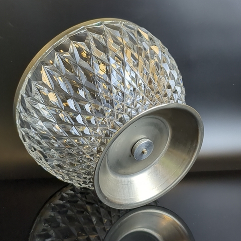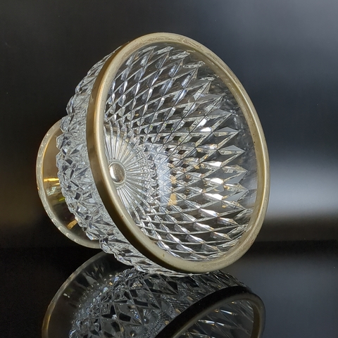 Элегантная винтажная хрустальная ваза времён СССР — изысканный предмет советского стекольного искусства. Выполнена из прозрачного гранёного хрусталя с богатой игрой света и характерным блеском. Отличается чётким геометрическим рисунком, создающим эффект сияния при любом освещении.