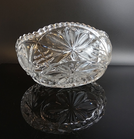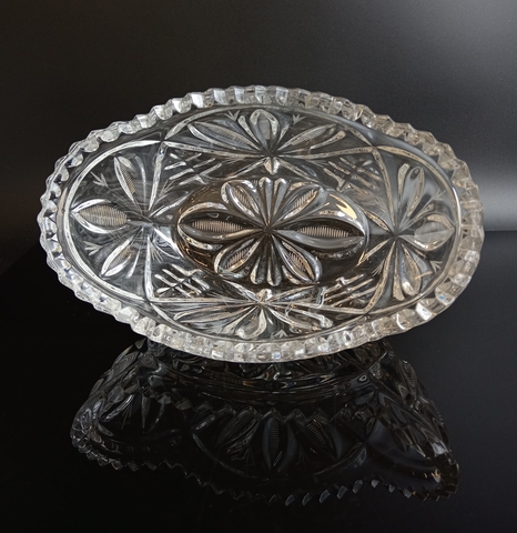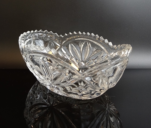 Ваза салатник Ладья хрустальный, алмазная грань, резной декор, винтаж СССР 1970-1990 гг. Высота - 9 см, длина - 21.5 см. Присутствуют следы использования - состояние на фото