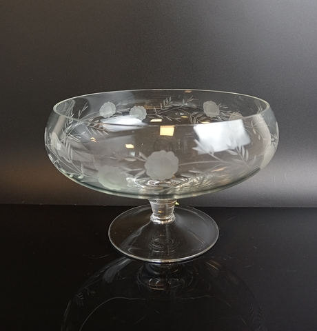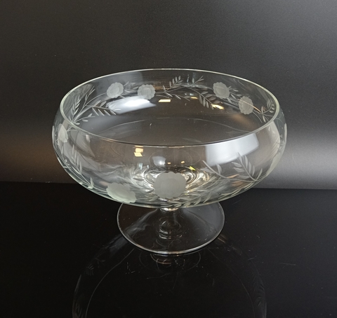 Ваза стеклянная конфетница на ножке, с матовым резным узором, винтаж СССР 1970-1990 гг. Высота - 12 см, диаметр - 17 см. Присутствуют следы использования- состояние на фото
