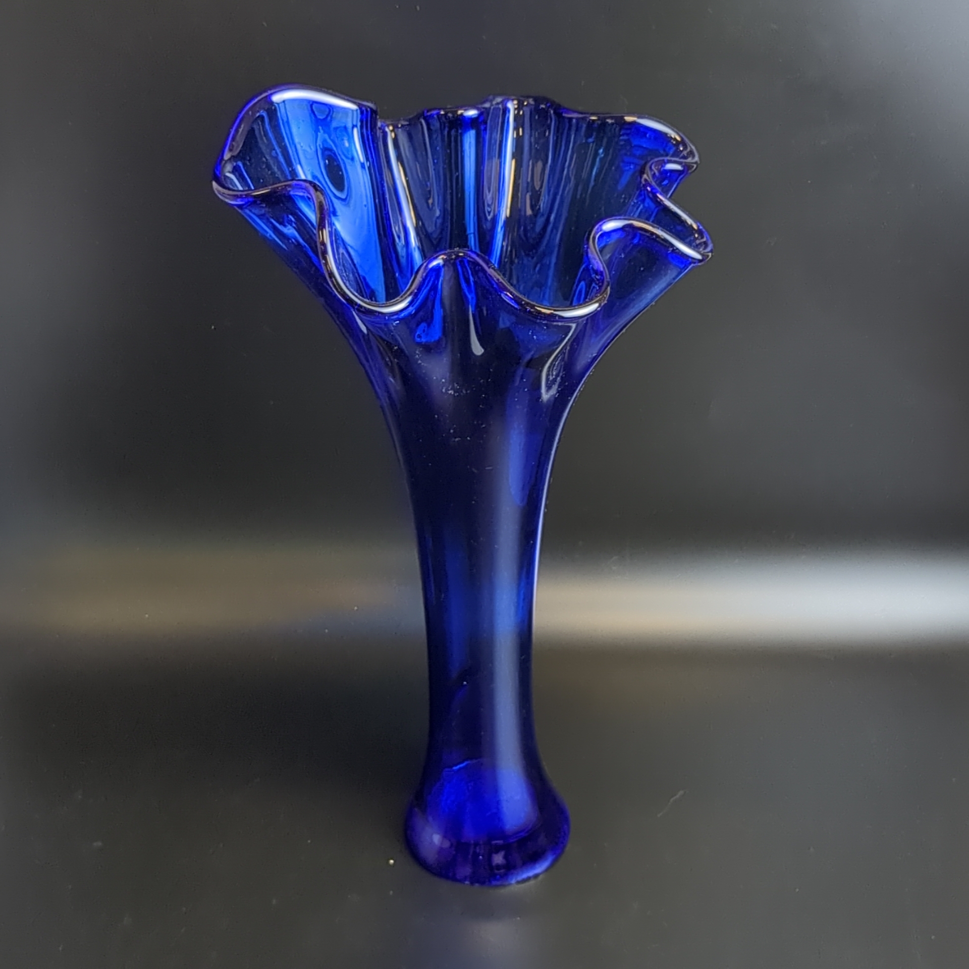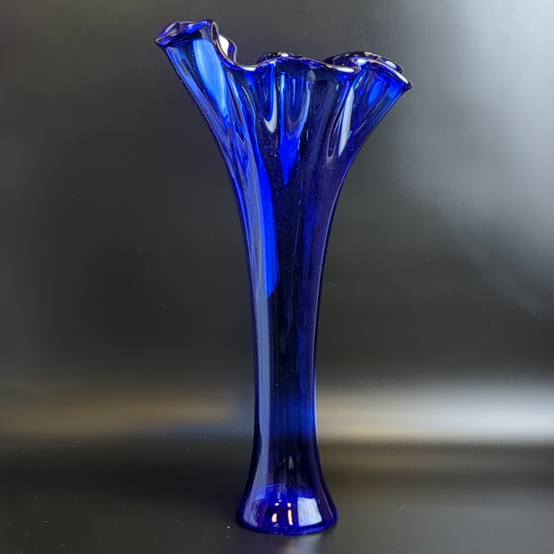 Ваза «Волна» синее цветное стекло с волнообразным бортом, выдувная техника, ГХЗ, винтаж СССР 1970-1991 год. Высота - 40 см, длина верха -20 см. Присутствуют следы использования- состояние на фото