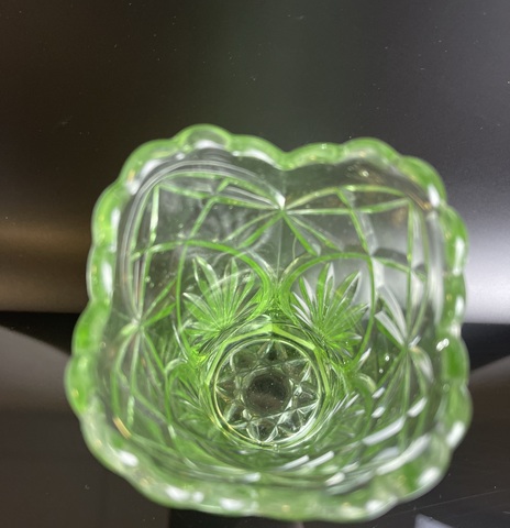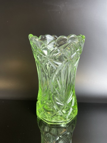 Ваза зеленое стекло винтажная 12.5 см, резные узоры, толстое стекло времен СССР 1950-1980 гг. Состояние на фото