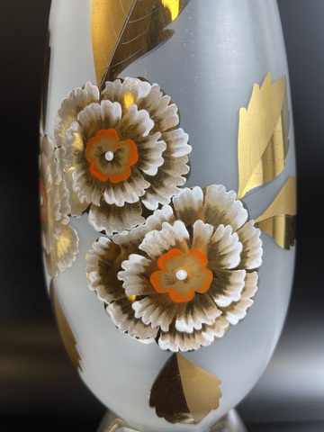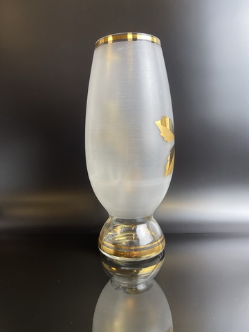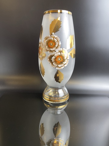 Ваза живописная стеклянная Чехословакия, Богемское матированное стекло, позолота, изящная роспись, выпуск 1960-1970х гг. Высота - 28 см. Сервантное хранение, незначительные следы использования