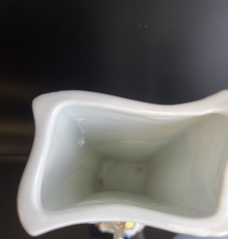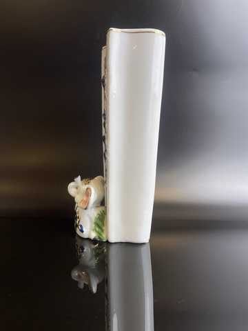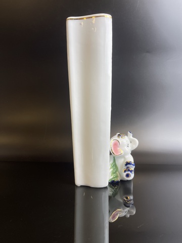 Вазочка фарфоровая красивая под цветы с фигуркой слоника, роспись, позолота, цветы, высота 20.5 см. Присутствуют незначительные следы использования - легкий налет на дне вазы , состояние на фото