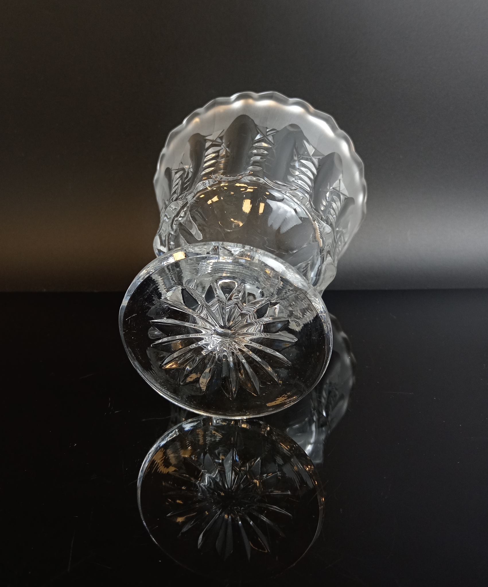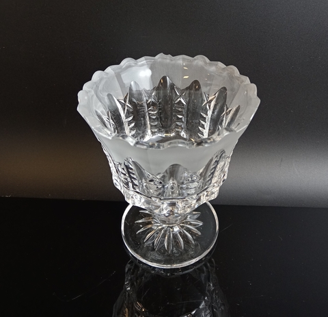 Вазочка конфетница хрустальная на ножке , матовый хрусталь, изящный декор, винтаж СССР 1970-1990 гг