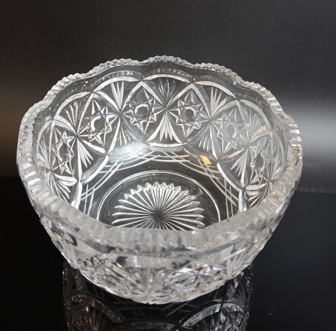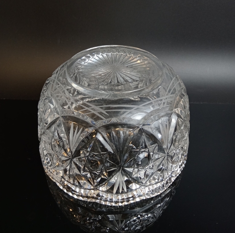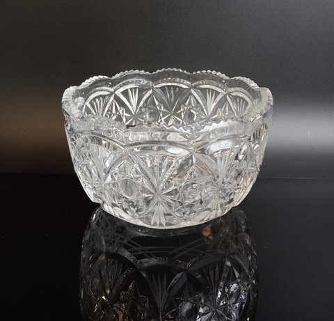 Вазочка конфетница, салатник хрусталь, алмазная грань, геометрический орнамент, винтаж СССР 1970-1990 гг. Высота - 8,5 см, диаметр - 14,5 см. Присутствуют следы использования - состояние на фото