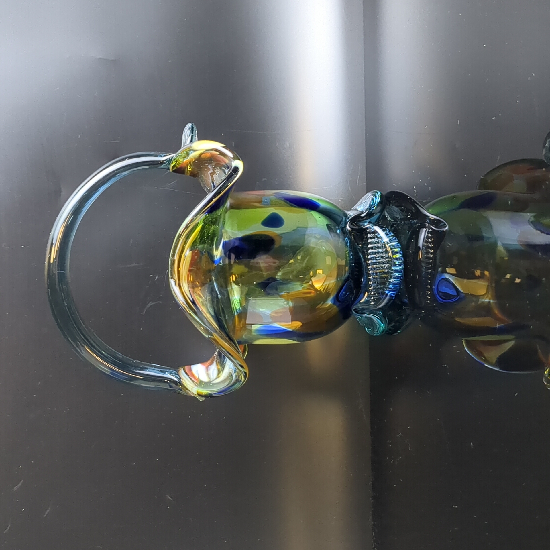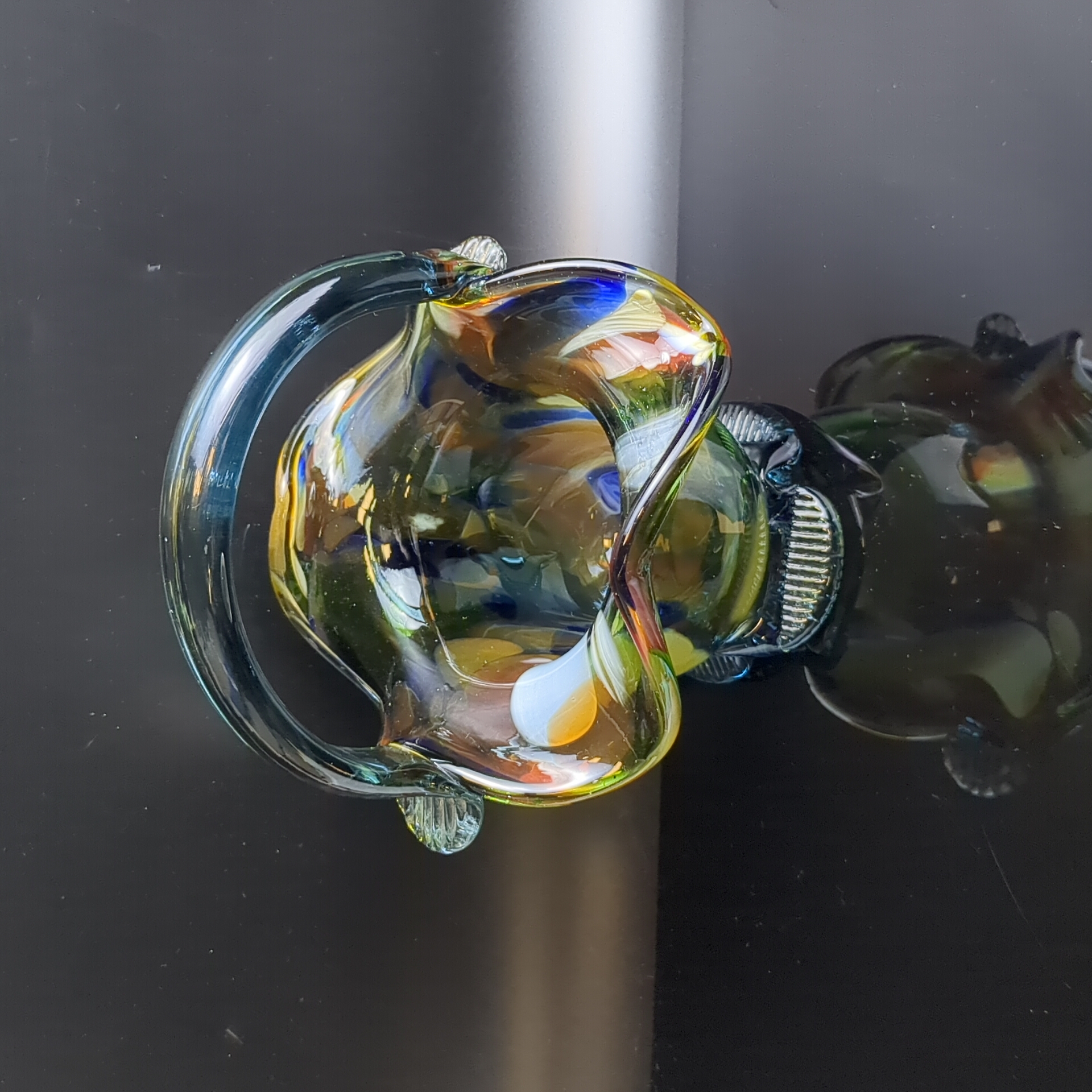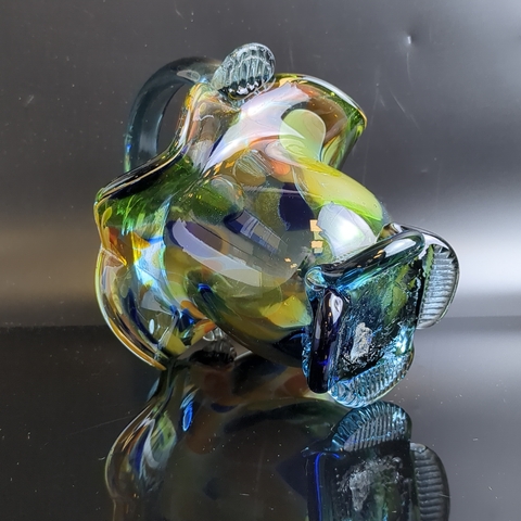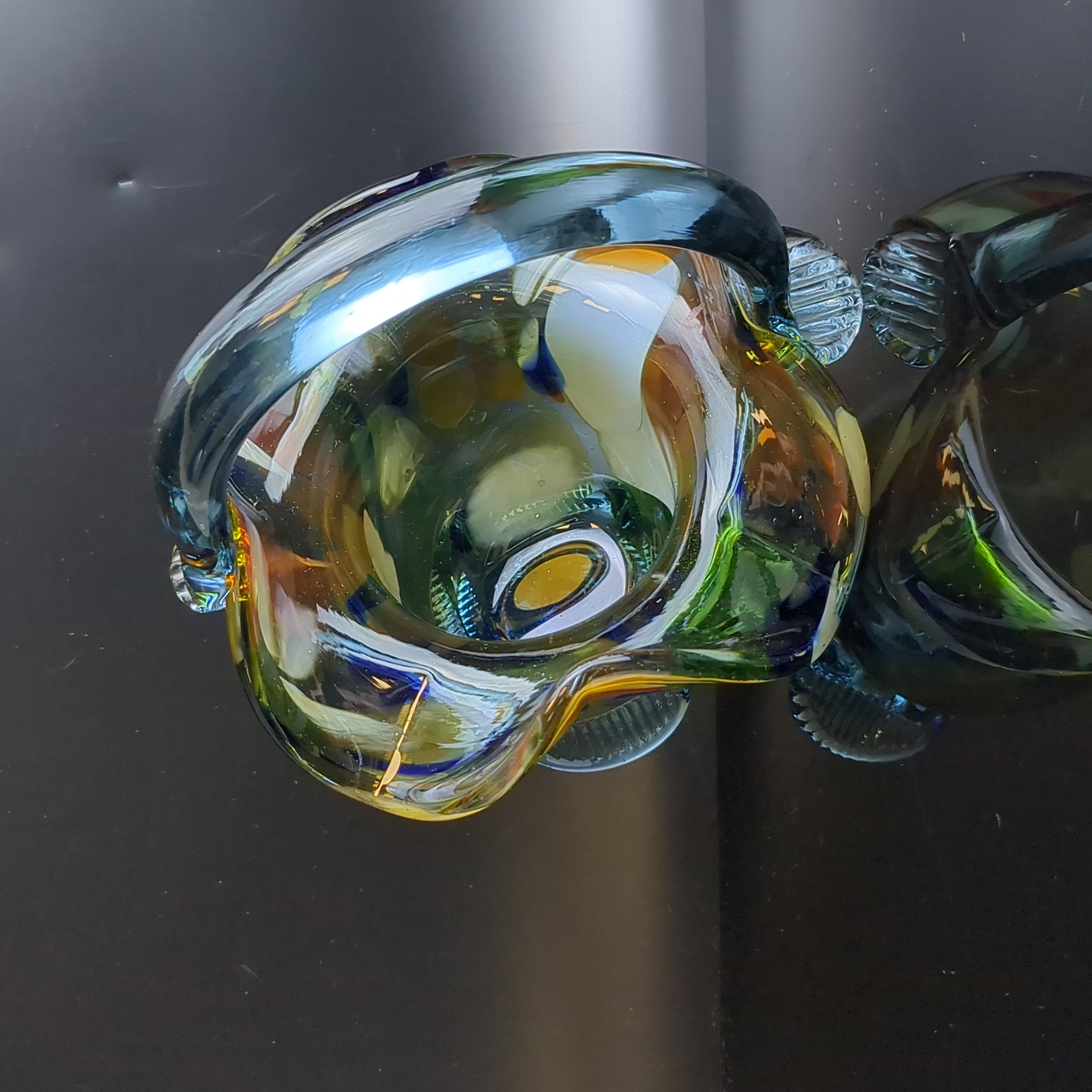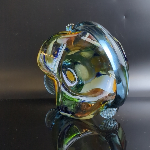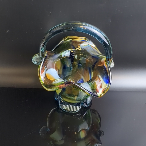 Вазочка конфетница в виде корзинки, разноцветное стекло, гутная техника, синий оттенок, высота -16.5 см, винтаж СССР 1970-1990 гг. Вазочка идеально впишется в любой стиль и сделает изящную подачу конфет, сладостей и фруктов.