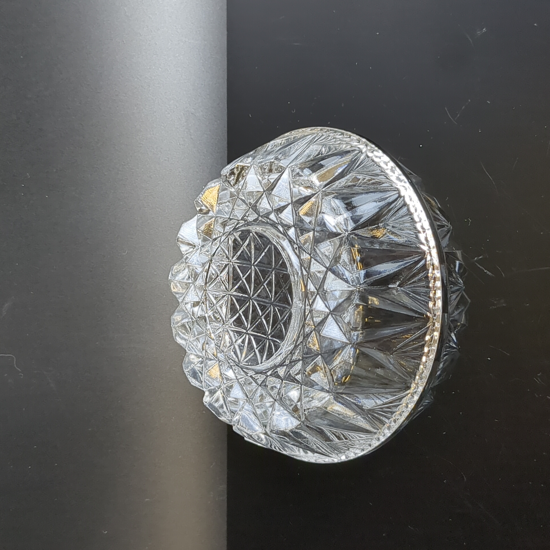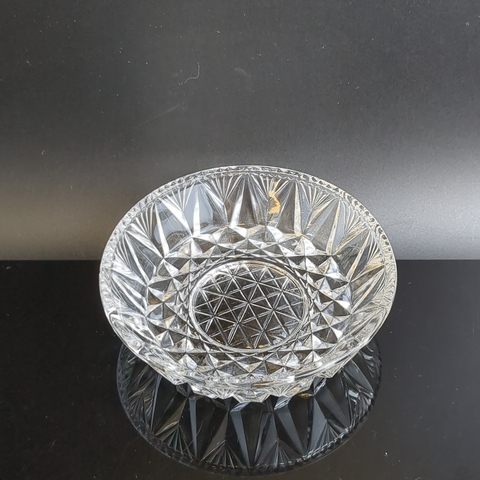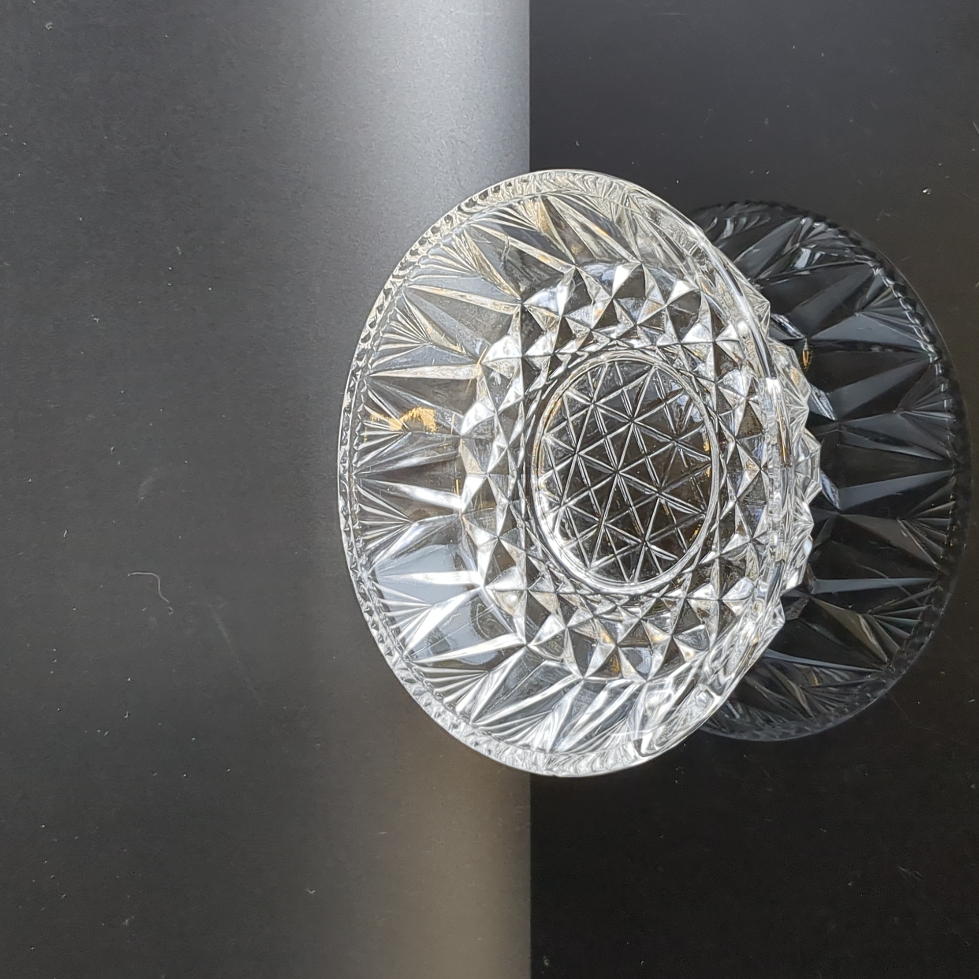 Вазочка стеклянная для орехов, цукатов и варенья, геометрический орнамент, винтаж СССР 1970-1990 гг. Высота - 3 см, диаметр - 11 см. Состояние на фото