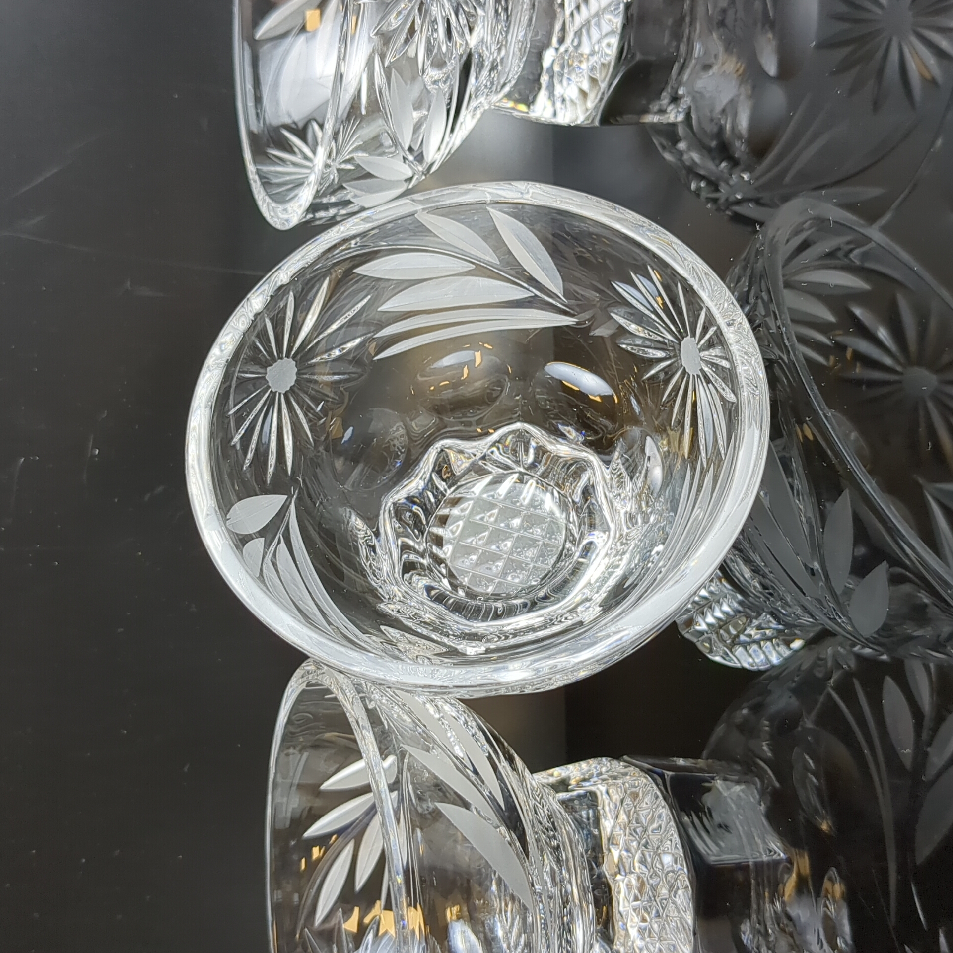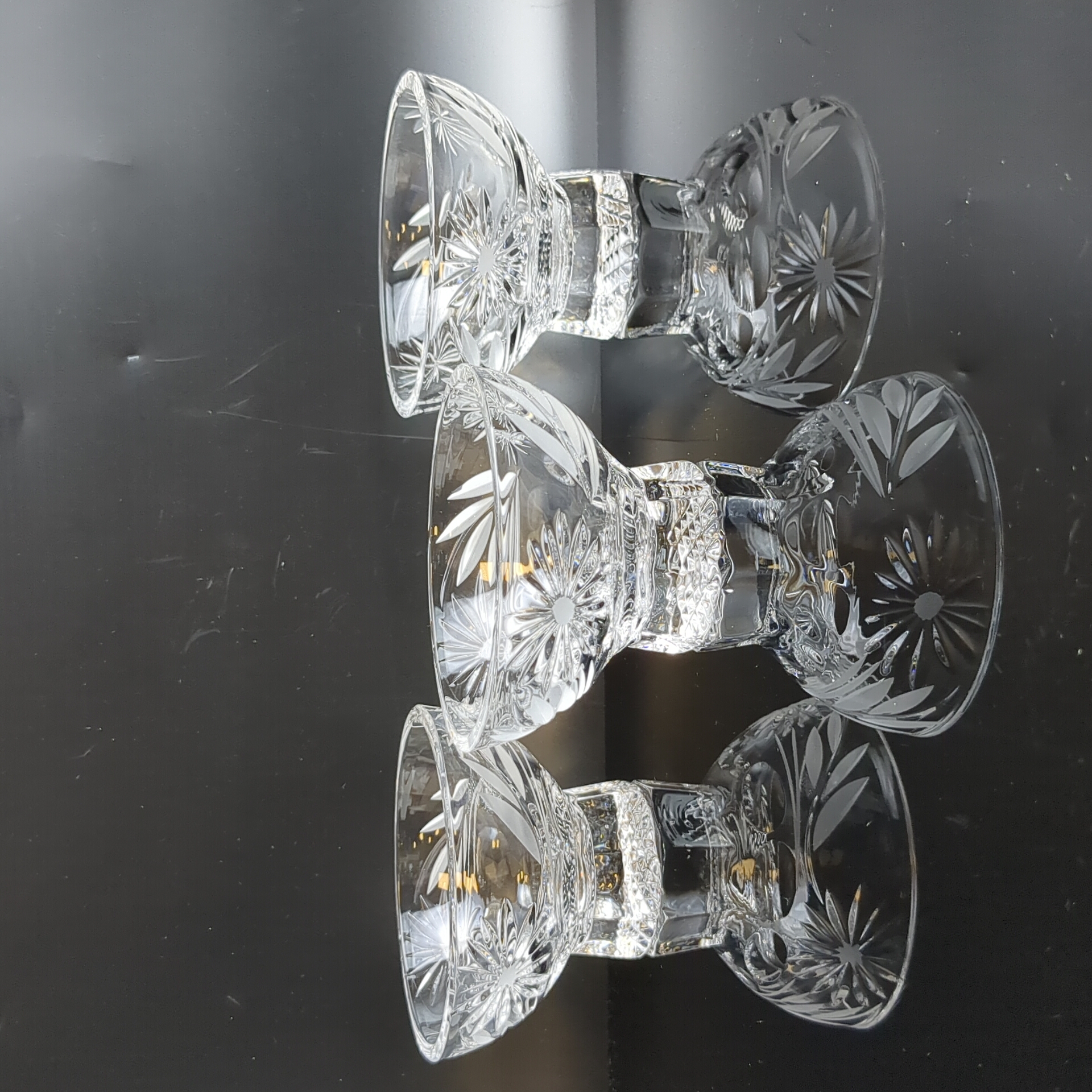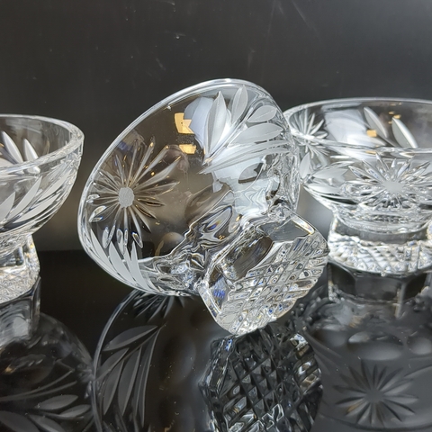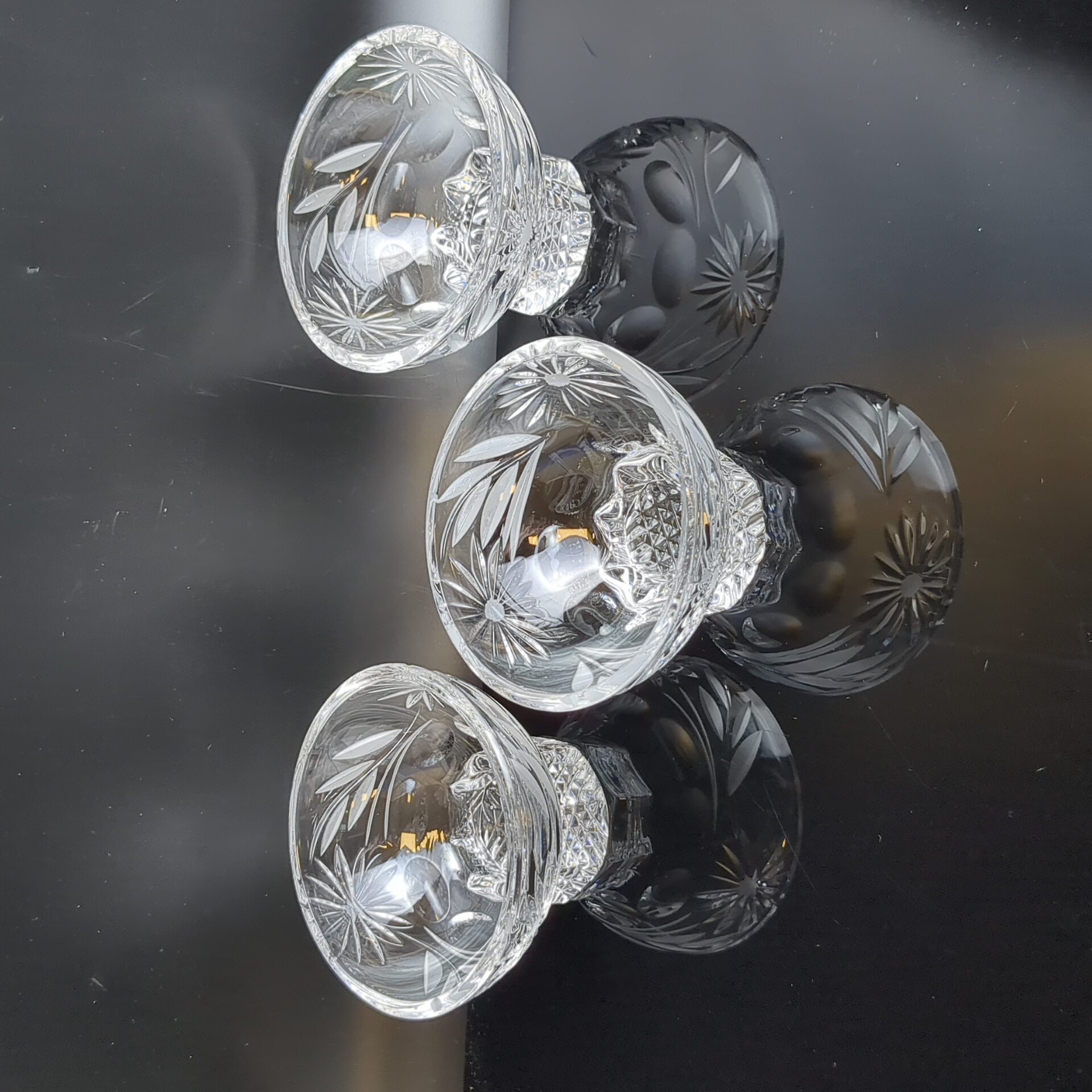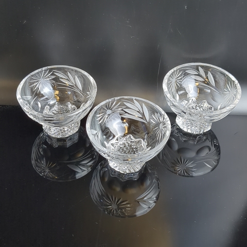 Вазочки, креманки для сервировки набор из 3х штук, для варенья, джема, орехов, хрустальные, алмазная грань, геометрический орнамент, винтаж 1970-1990 гг. Высота - 6 см, диаметр верха - 9 см.