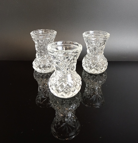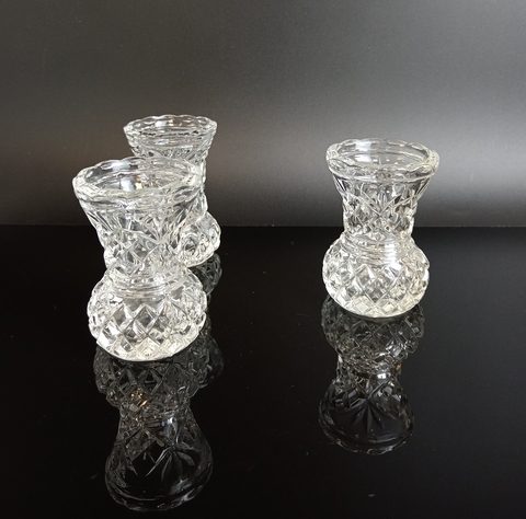 Вазочки миниатюрные набор из 3 штук, хрусталь, с рельефным декором, алмазная грань, Чехословакия, Богемия, времён СССР 1970-1990 гг. Высота - 8 см. Объём - ?мл.