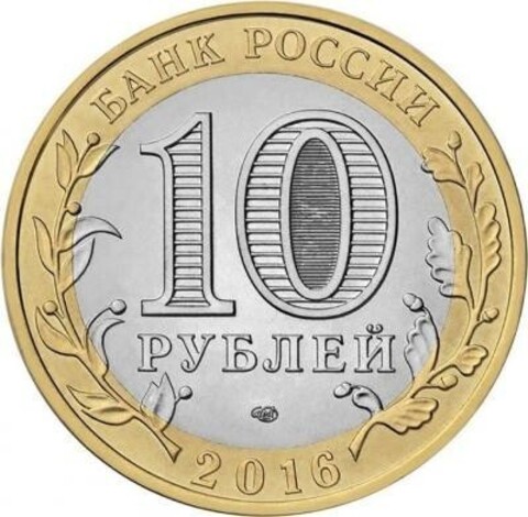 Сувенирная монета номиналом 10 рублей 2016 года с выгравированным изображением.