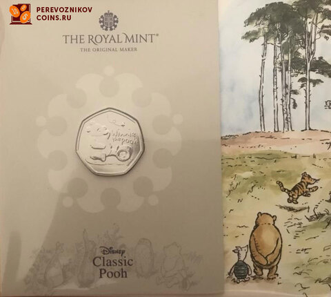 Великобритания 50 пенсов 2020 Винни-Пух обычная монета BUNC буклет