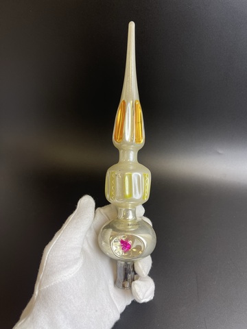 Верхушка, пика трехсекционная прожектор на ёлку стекло, роспись, высота - 28 см, винтажная, СССР 1940-1950 гг