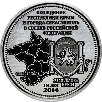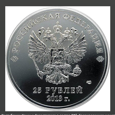 "Воссоединение Крыма и Севастополя". Гравированная монета 25 рублей
