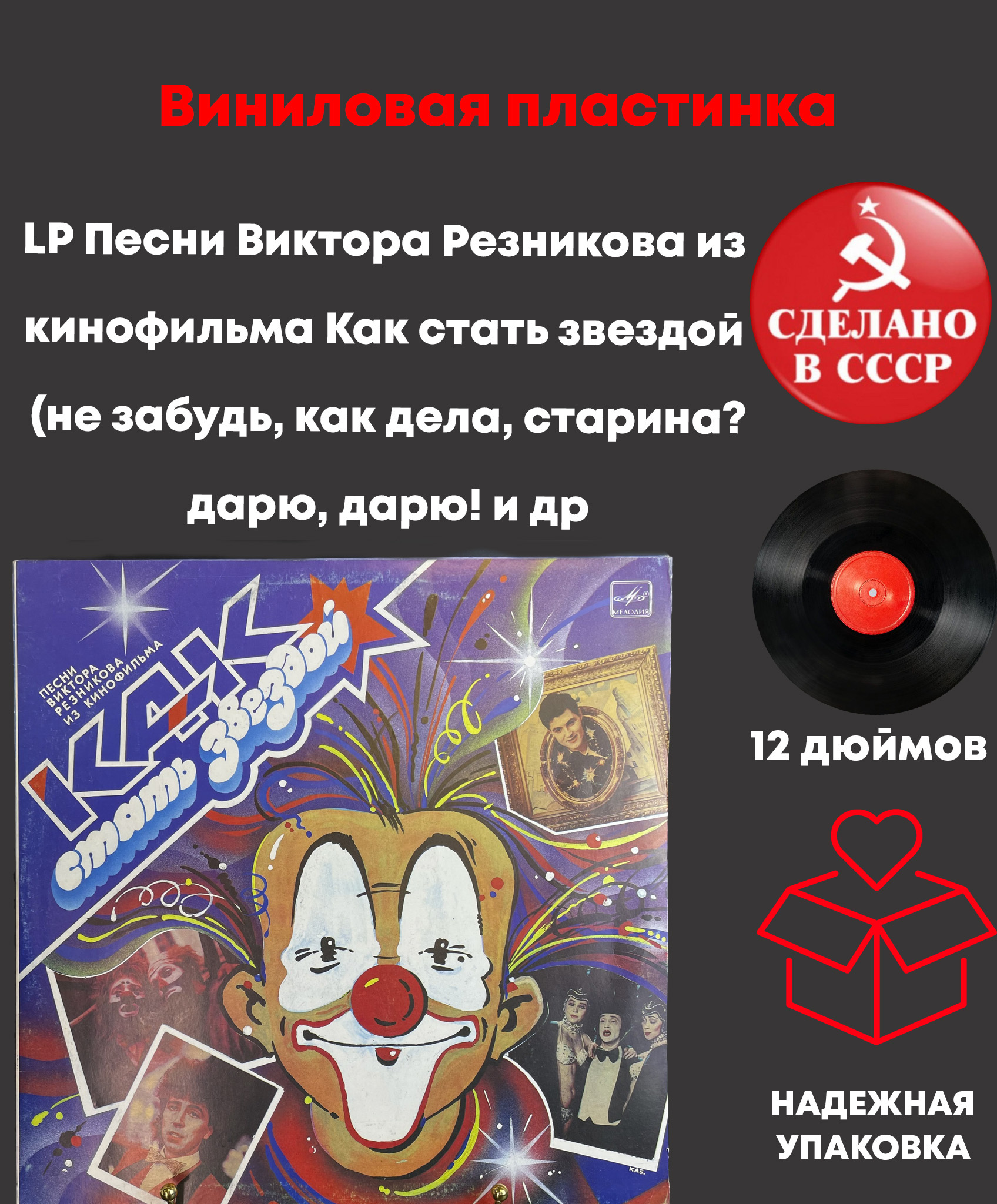 LP Виниловая пластинка 12 дюймов Песни Виктора Резникова из к/фильма Как стать звездой (не забудь/ как дела, старина?/ дарю, дарю! и др), Мелодия 1988 год СССР.Конверт EX / Диск EX