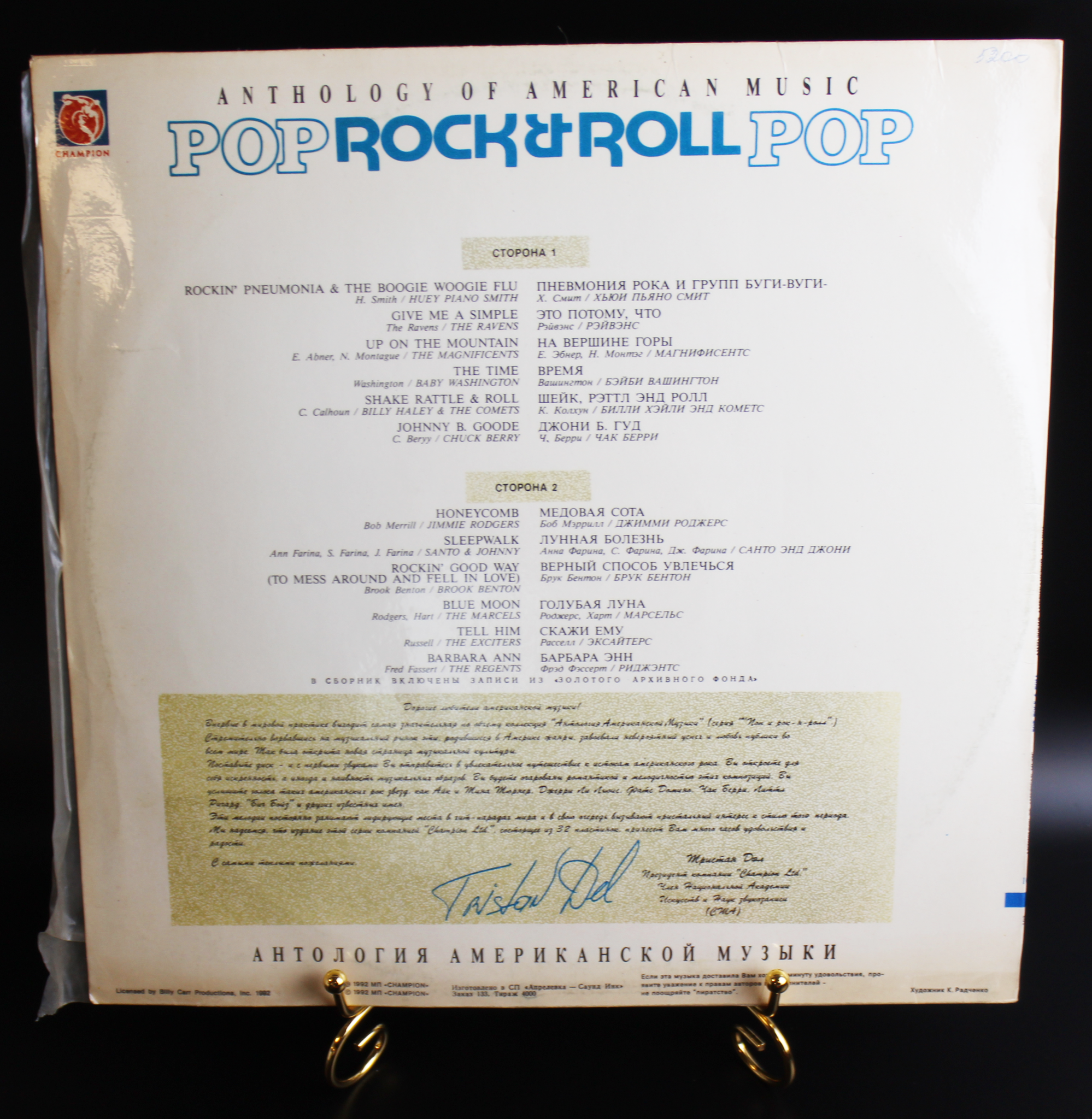 Виниловая пластинка "Антология американской музыки. Поп и рок-н-ролл" 10 , Anthology of Americаn music, Champion . Присутствуют незначительные следы использования
