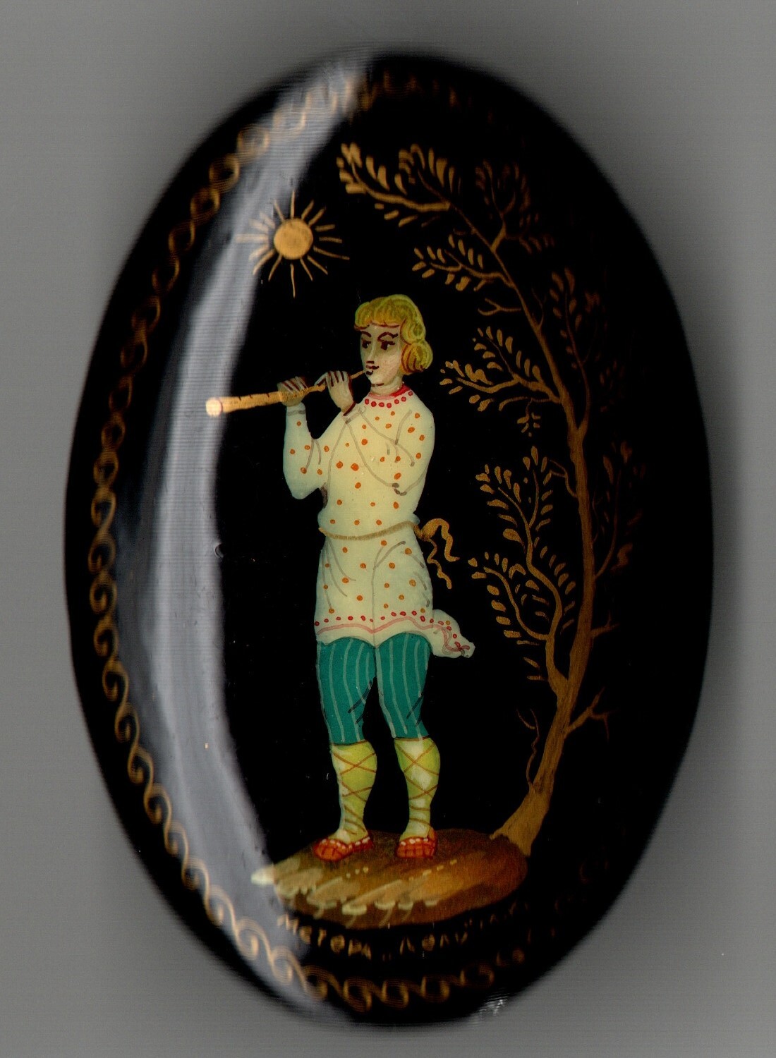 Винтажная брошь авторская Мстёра - Папье-маше - Ручная роспись - Лель