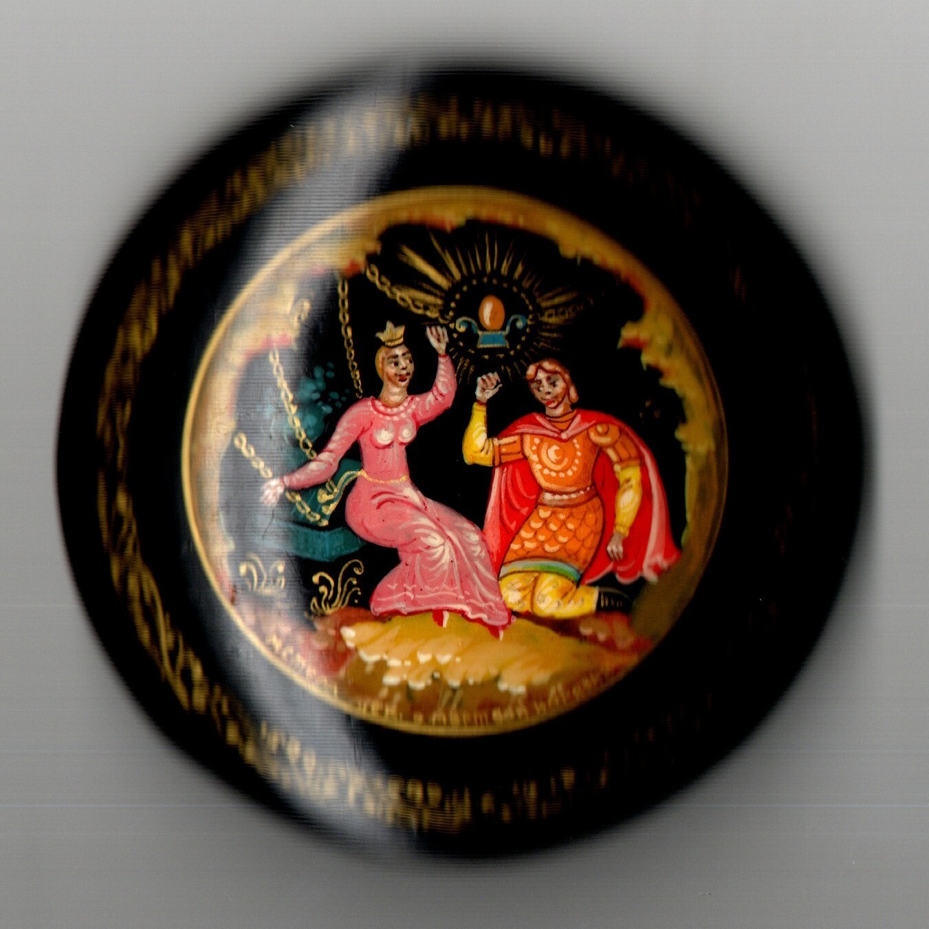 Винтажная брошь авторская Мстёра - Папье-маше - Ручная роспись - Сказка о мёртвой царевне