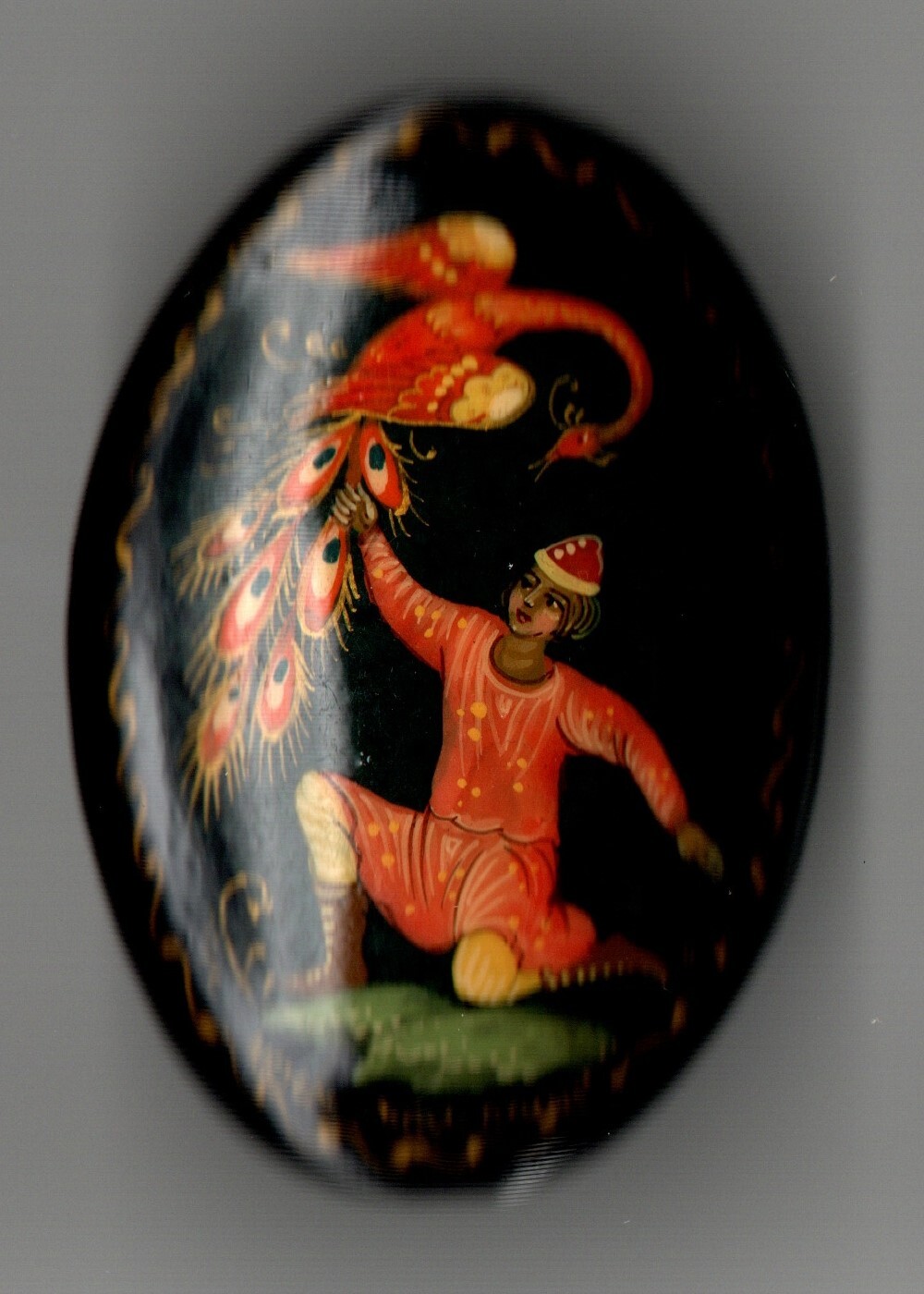 Винтажная брошь авторская Мстёра - Папье-маше - Ручная роспись - Жар-птица