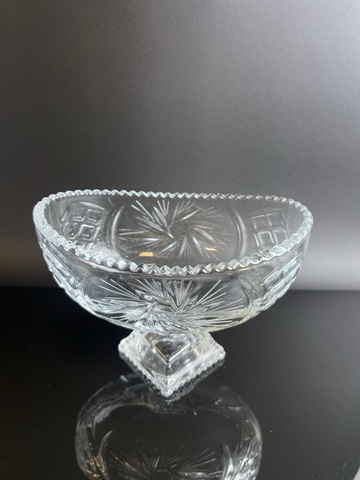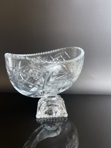Винтажная конфетница на ножке "Снежная колыбель", стекло, винтаж, узор, 1980-1990 гг. Высота- 11.5 см, длина - 15.5 см. Сервантное хранение - состояние на фото