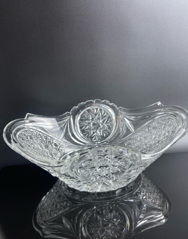 Винтажный хрустальный салатник большая ладья, алмазная грань, СССР 1970-1990 гг. Длина- 29 см, ширина - 16 см, высота - 10.5 см, Вес - 1.5 кг. Присутствуют следы использования - состояние на фото