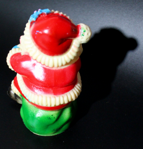 Винтажный резиновый Дед Мороз или Санта-Клаус с подарком. Пищалка