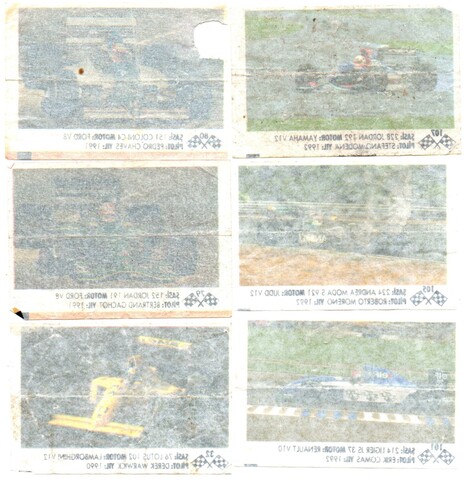 Вкладыш Формула 1 Formula 1 - 6 штук. От жевательной резинки. По номерам без повторов № 32, 79, 80, 101, 105, 107. На одном вкладыше надрыв. Состояние на фото