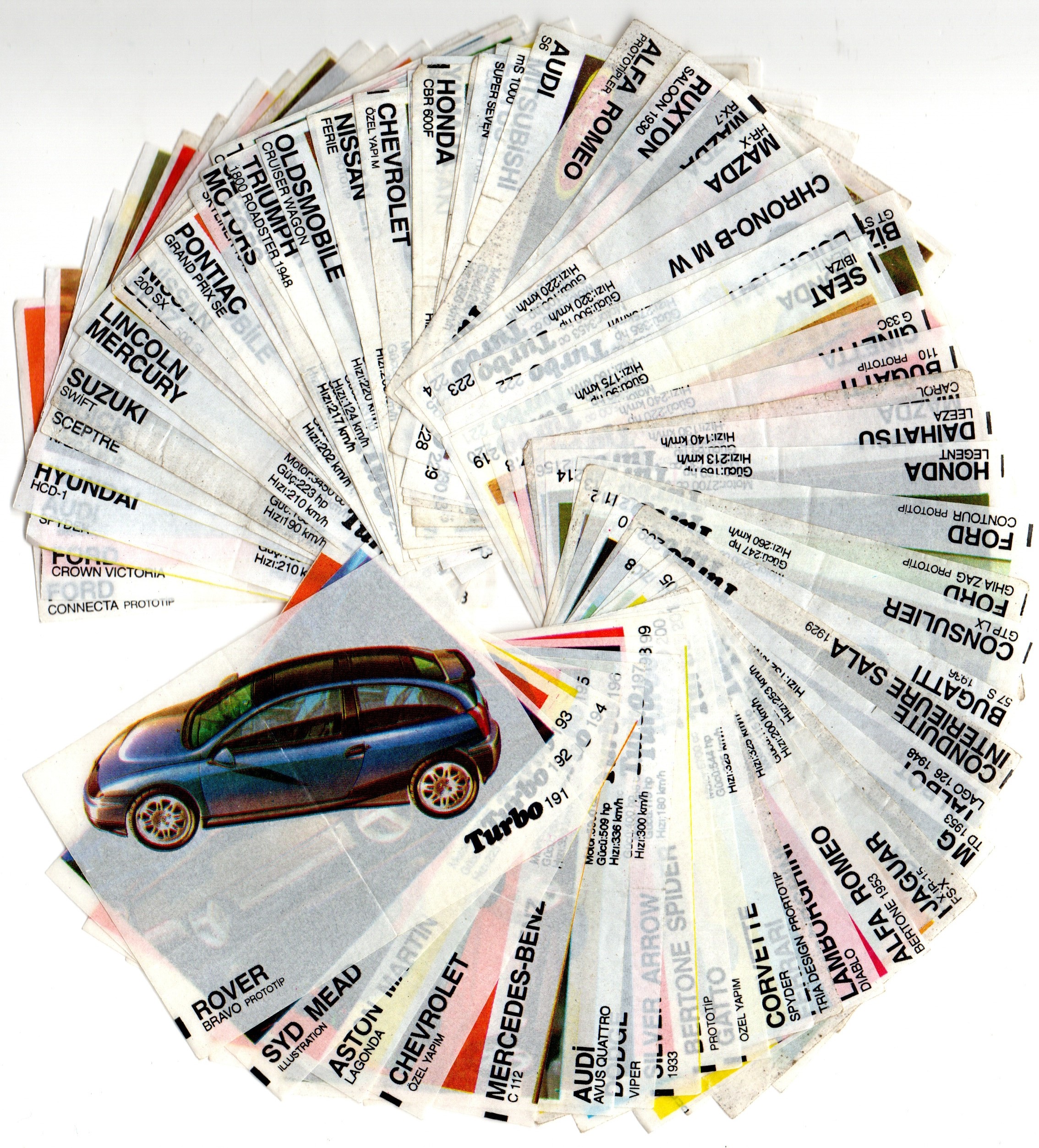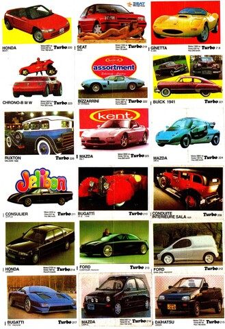 Вкладыши от жвачки Turbo Black - Турбо черные 70 штук без повторов. Серия 191 - 260. Полная серия