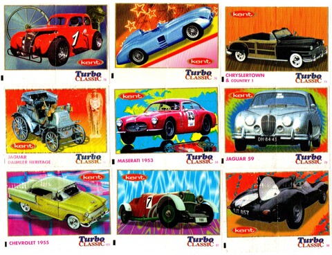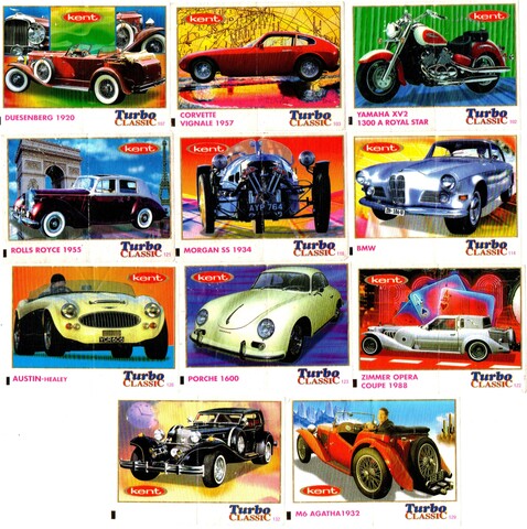 Коллекция вкладышей от жвачки Turbo Classic - Турбо Классик. 20 штук без повторов. Серия 71 - 140. Синий логотип. Kent. Номера 74, 76, 78, 79, 84, 94, 96, 97, 101, 102, 103, 107, 114, 118, 121, 122, 123, 128, 129, 132