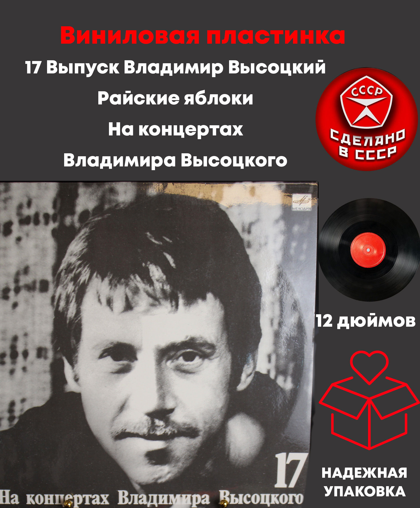 17 Выпуск Владимир Высоцкий - Райские яблоки, виниловая пластинка 12 дюймов LP, На концертах Владимира Высоцкого Мелодия СССР 1991 год.