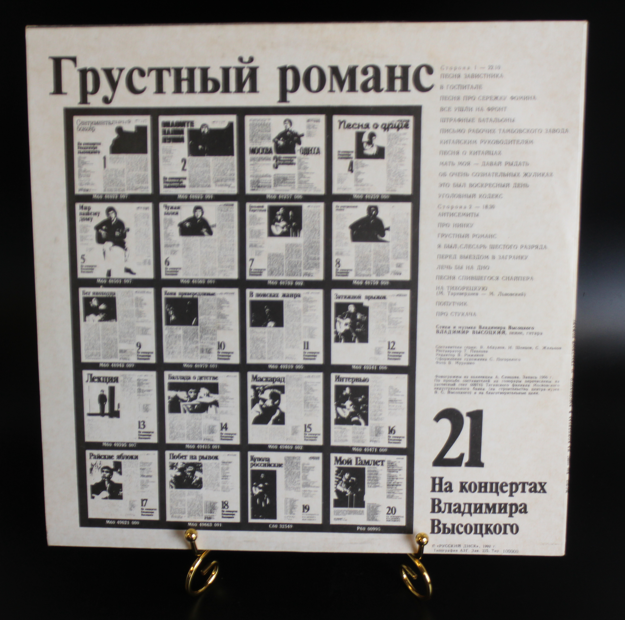 LP 21 выпуск - Грустный романс. Владимир Высоцкий. Виниловая пластинка 12 дюймов , На концертах Владимира Высоцкого 21 выпуск - Русский диск 1991 год Мелодия. Конверт EX / Диск EX