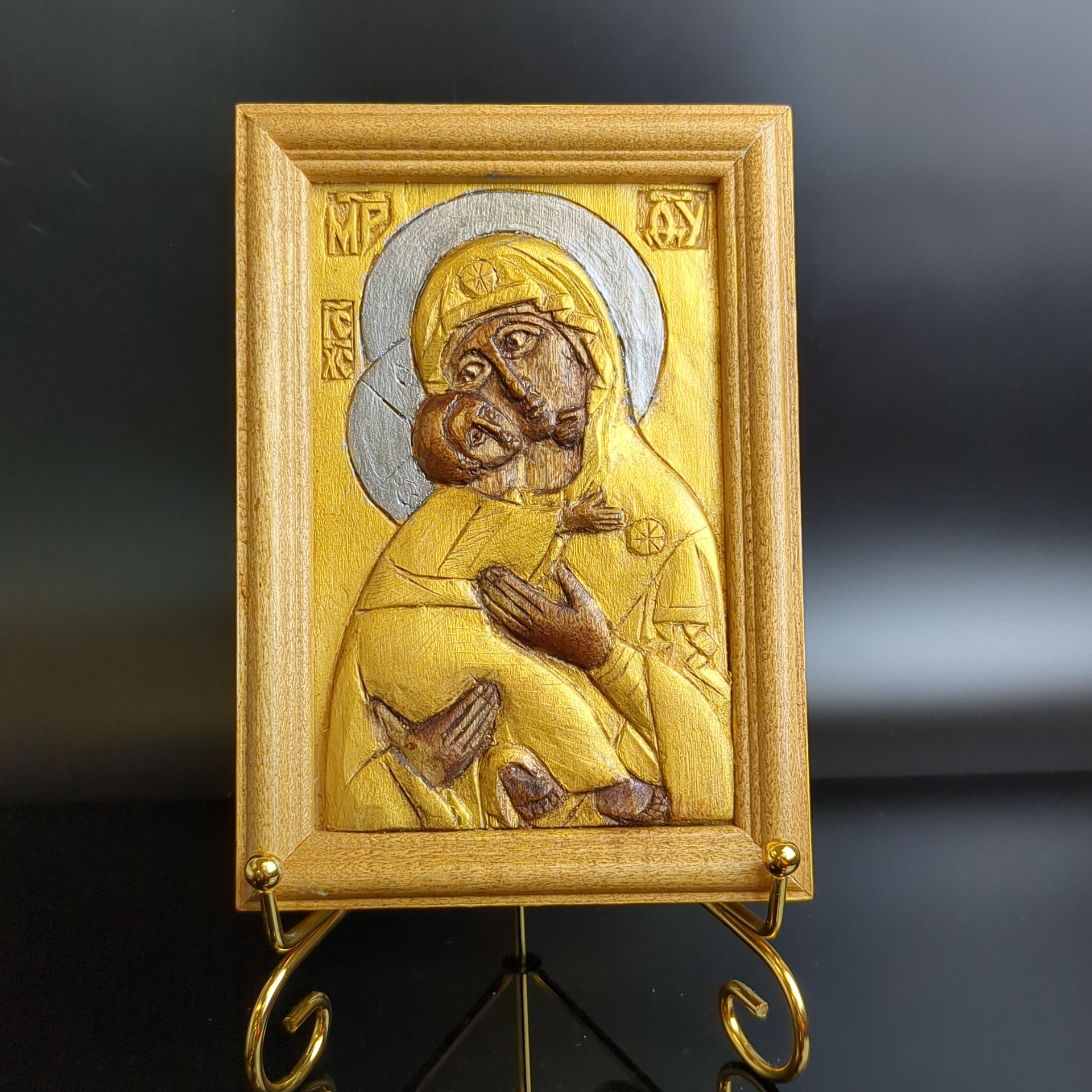 Владимирская икона Божией Матери. Старинная деревянная резная икона
