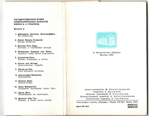 Выпуск 6. Полный набор 12 Открыток Государственный Музей Искусств Имени А. С. Пушкина. Живопись