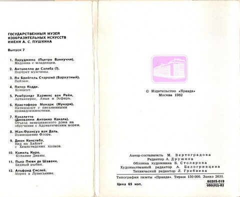 Выпуск 7. Полный набор 12 Открыток Государственный Музей Искусств Имени А. С. Пушкина. Живопись